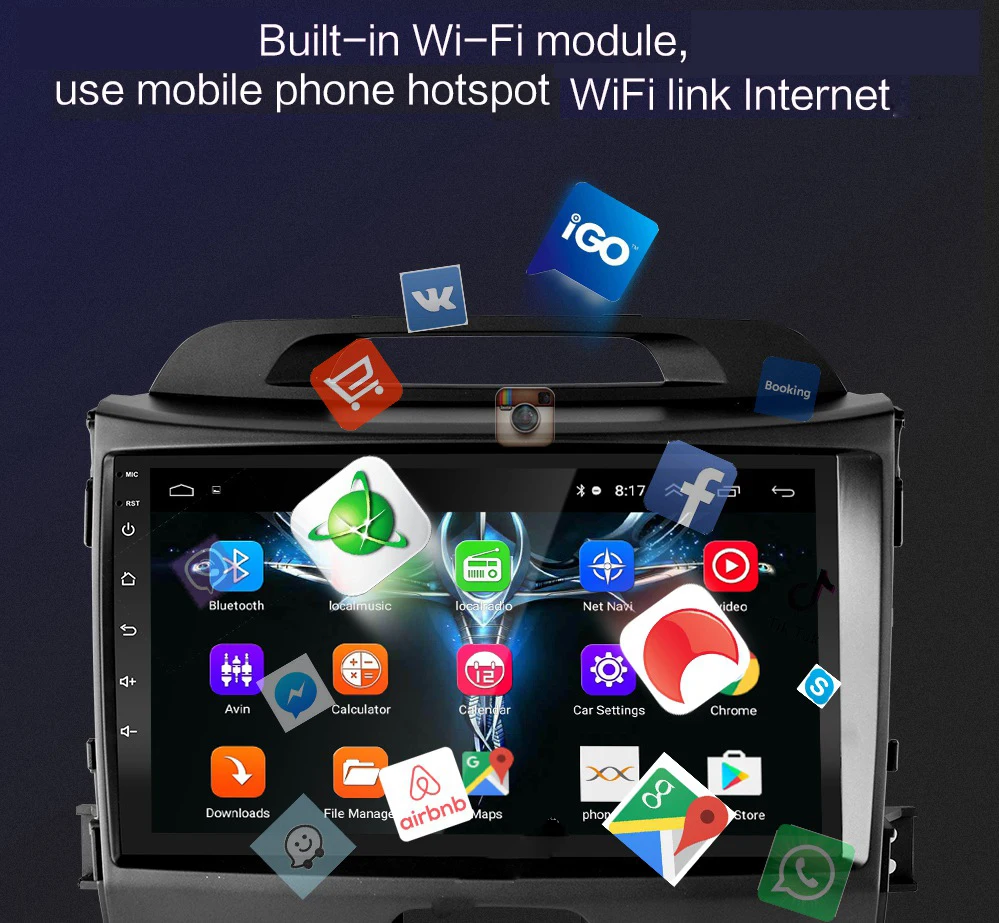 1.Wi-Fi подключение: встроенный модуль Wi-Fi, может подключаться к Интернету через Wi-Fi горячее место, скачать приложение для просмотра онлайн-телевизора, фильма, чата с вашими фирмами2. Gps-навигация: Встроенный навигационный модуль, Бесплатная навигационная карта (включая большинство стран слова), Поддержка многоязычного интерфейса/голосовой навигации3. Функция Bluetooth: Встроенный модуль bluetooth, поддержка подключения телефона по bluetooth, громкая связь для звонков или воспроизведение музыки по bluetooth4. Функция зеркальной связи: проигрыватель Android MP5 может зеркальной связью с телефоном Android с помощью usb-кабеля (ссылка на телефон IOS по WIFI), вы можете прикоснуться к экрану MP5, чтобы управлять телефоном на AndroidТелефон IOS не может работать с сенсорным экраном MP5 (не подходит для всех телефонов)5. Функция входного сигнала DVR: Поддержка внешнего видеорегистратора USB (DVR) вход (только для DVR с приложением), вы можете управлять видеорегистратором с помощью приложения6. Функция заднего вида: Поддержка входа камеры заднего вида, поддержка автомобиля более безопасная и удобная7. Настройка радио: Поддержка настройки FM, вы можете слушать радио, которое вас интересует, наслаждаться временем вождения8. Задний usb-порт Вход: Поддержка заднего кабеля USB вход, может воспроизводить музыку/фильм (u-диск не входит в комплект)Разрешение 9,1020*600: приносит вам высокое качество визуального опыта10. Улучшите качество звука с эквалайзером, используйте эквалайзер для регулировки звука, чтобы сделать лучшие результаты11. Поддержка изменения логотипа автомобиля12. Поддержка управления рулевым колесом13. Сервис Google-Play Store , Gmail , Google maps и т. Д. Поддерживает множество приложений для карт, которые вы можете скачать в Google shop ( Careland , Yandex , IGO и т. Д.)14. Поддержка онлайн и оффлайн карт, I-GO ; Sygic ; Navitel maps, других стран I-GO или Sygic maps.15. Поддержка цифрового ТВ CMMB (опционально)16. Поддержка USB DVR (опционально)17. Поддержка TMPS (опционально)18. Поддержка OBD (опционально)19. Поддержка DAB (опционально)