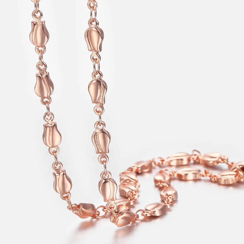 Простые Тюльпаны форма бутон звено цепи ожерелье для женщин девушек 585 розовое золото Мода Минимализм Элегантные Ювелирные изделия Подарки GN226