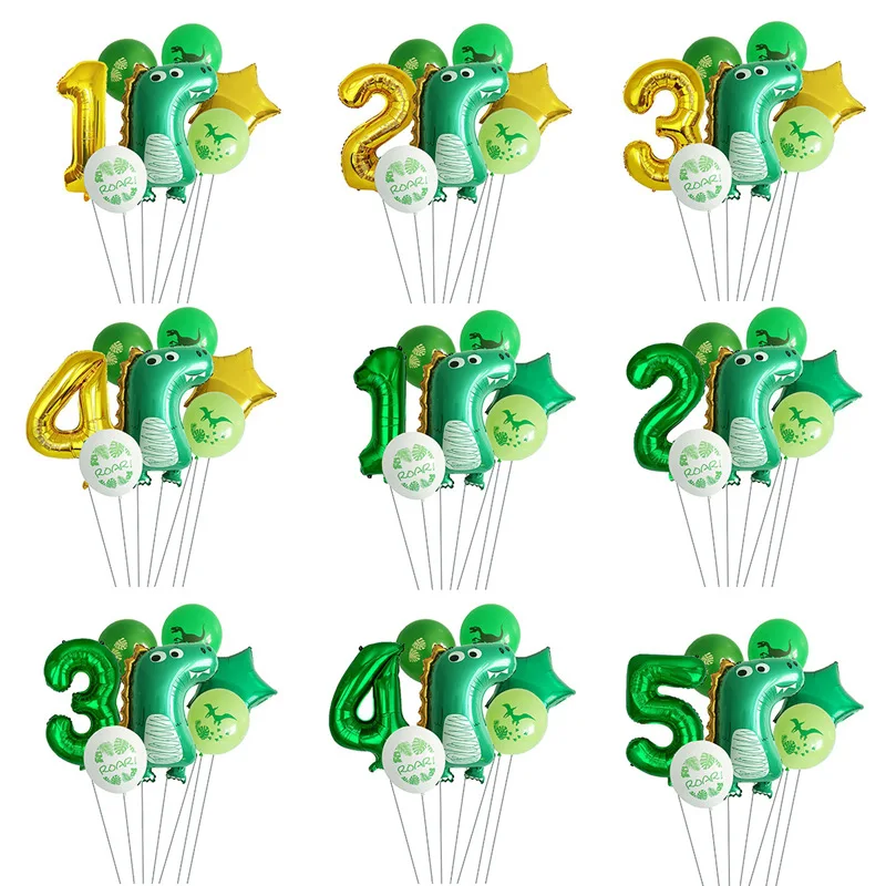 7 шт.лот зеленый динозавр, фольгированные цифры-шары, украшение для дня рождения, Детские шары для будущей мамы, воздушные шары с животными для вечерние НКИ