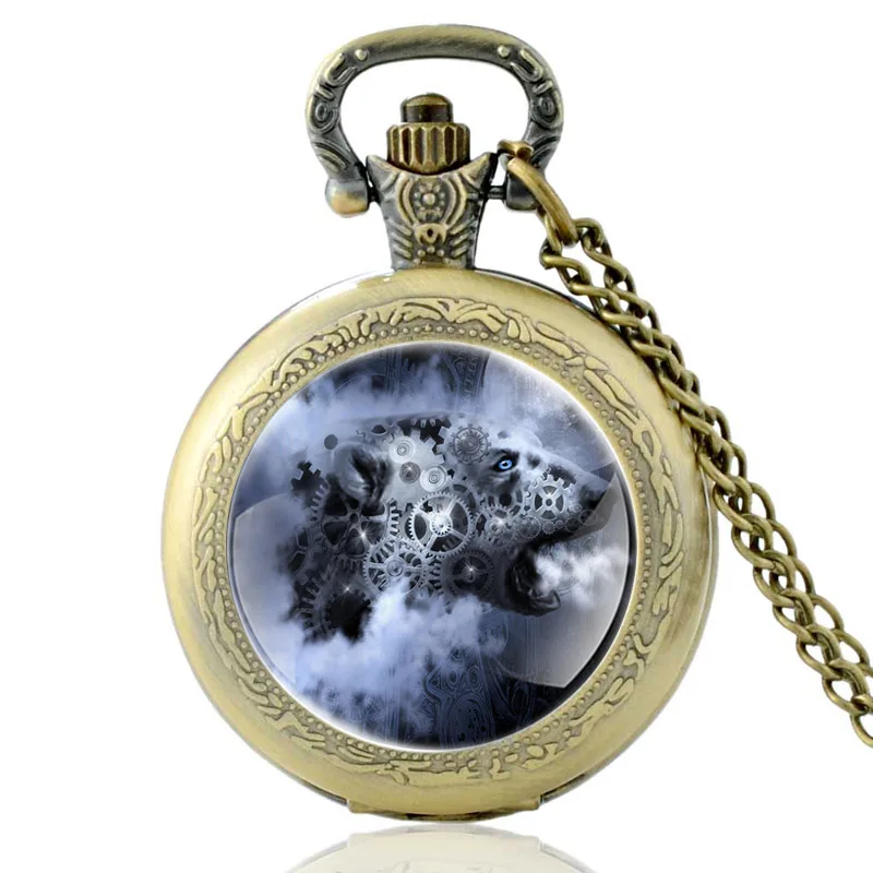 Таинственный волк стекло кабошон кварцевые карманные часы винтажные...