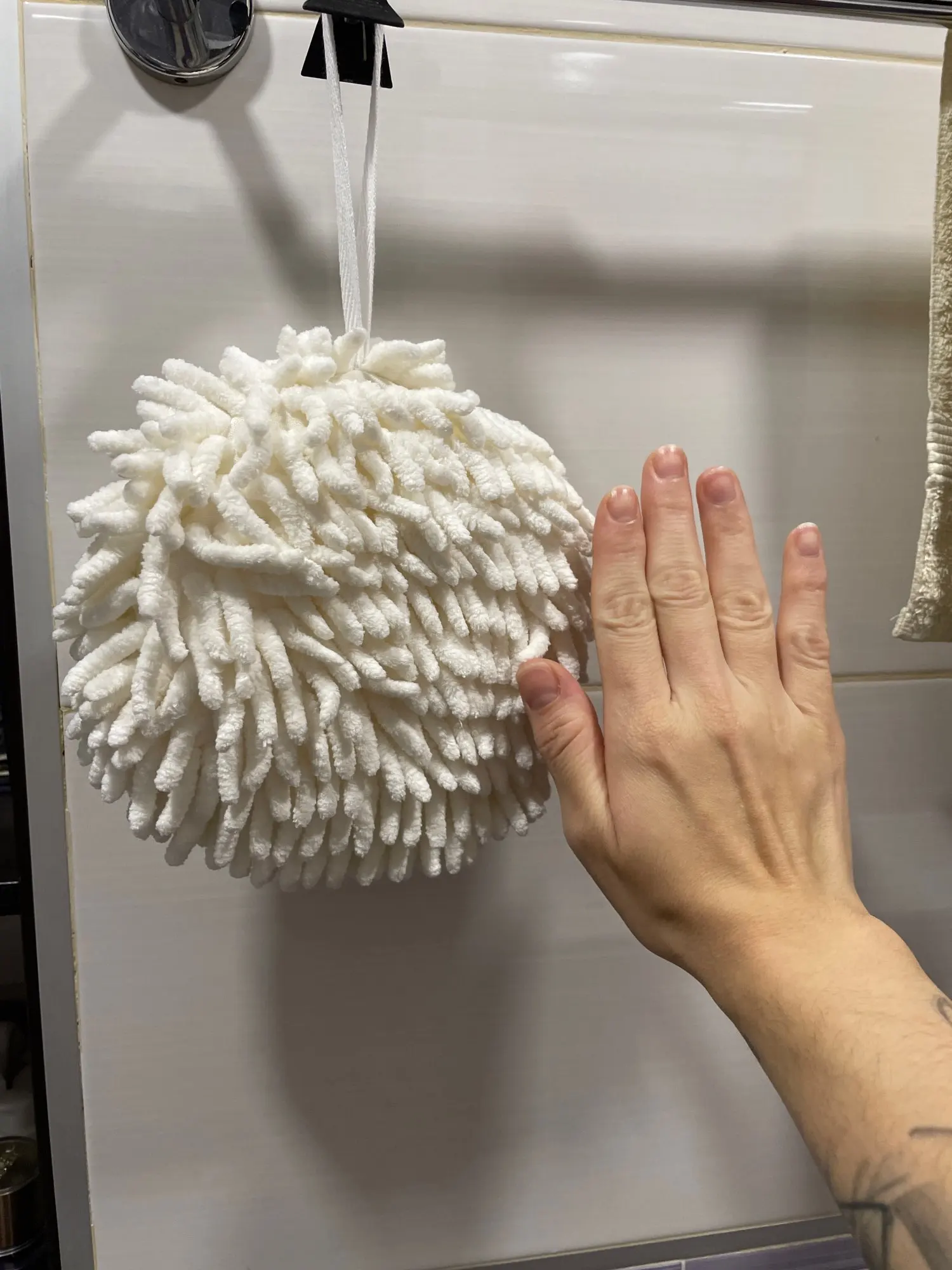 Это не мохнатый шарик, как кажется по фото. Плоская круглая подушка с чем-то упругим внутри. Чехол из ситца. И вот на чехол пришиты рядами эти впитывающие «пальчики». Как в использовании будет - не знаю. На вид доверия не внушает )
