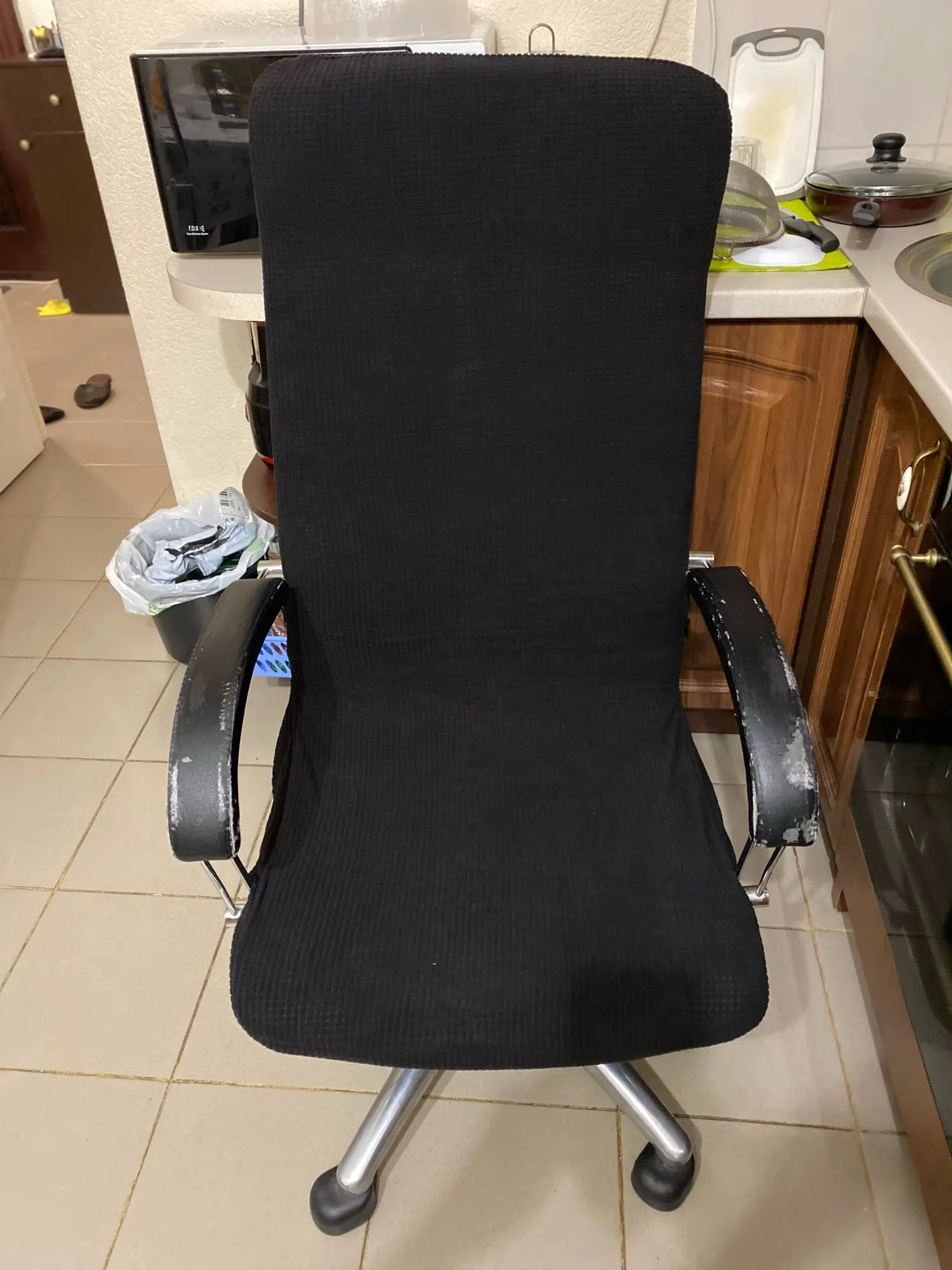 Продукт хорошего качества, цвет на удивление точный. Он хорошо подходит для стула, только там, где спинка соответствует сидению, немного теряется, но это приемлемо. Рекомендуем как товар, так и продавцу.