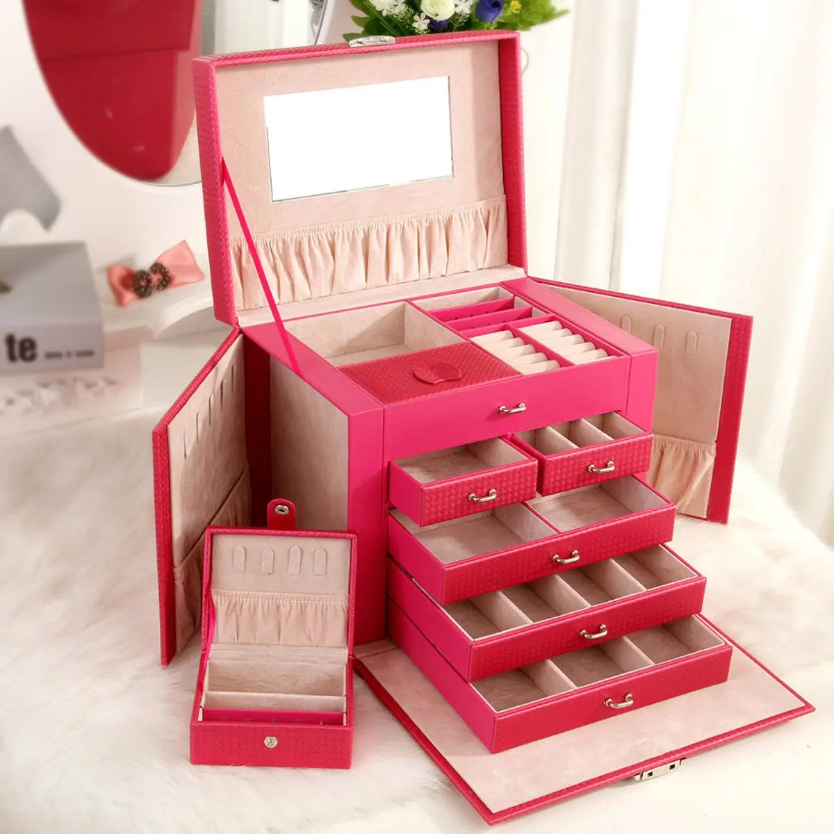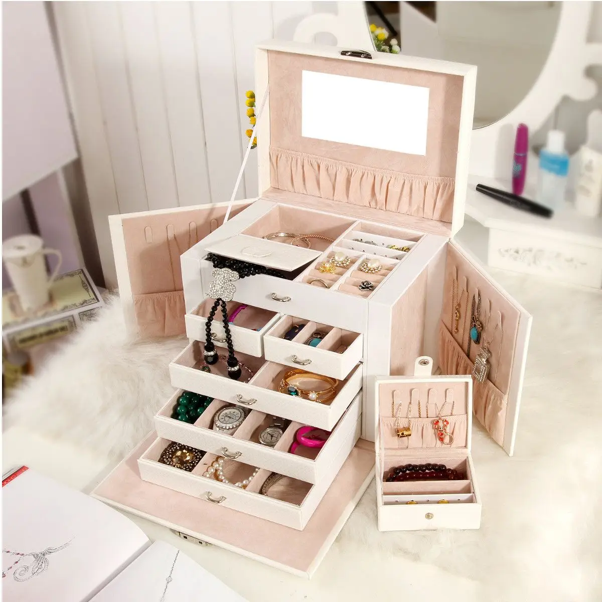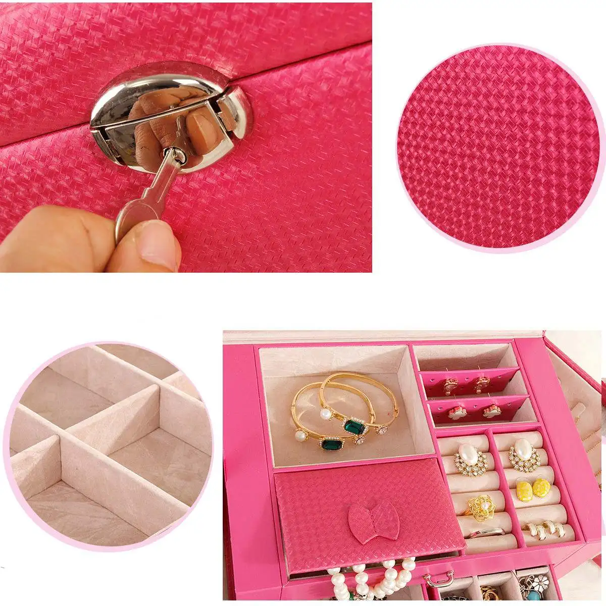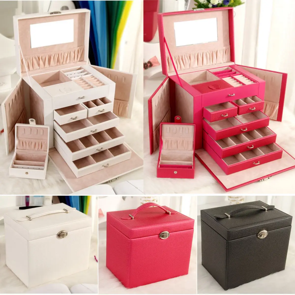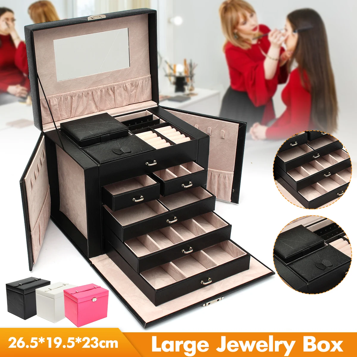 Большая шкатулка для ювелирных изделий, чехол для часов, бусин, сережек, кольца, для хранения ювелирных изделий, черный, белый, розовый, из искусственной кожи, органайзер для безделушек
