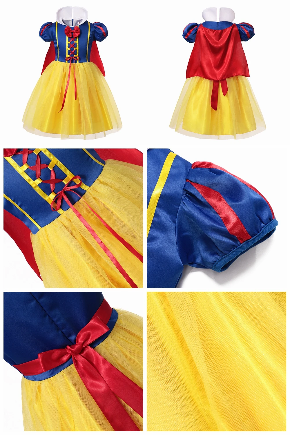 Детская одежда для девочек детское платье Белоснежки, платье принцессы нарядное платье; Детские вечерние Карнавальный Костюм Платье в стиле пэчворк с бантом ролевые платья наряды От 1 до 10 лет