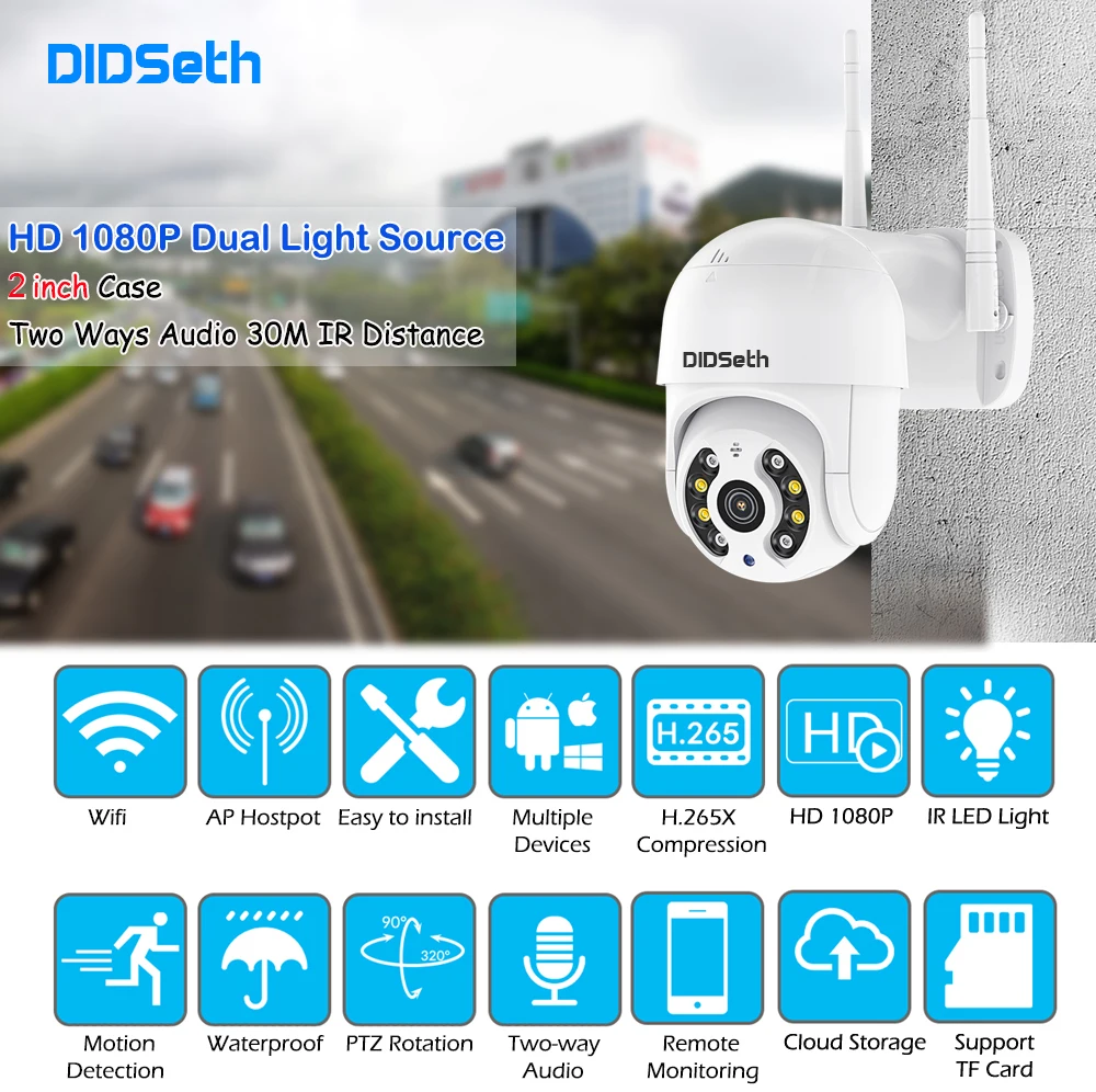 Камера видеонаблюдения DIDSeth, Wi-Fi, PTZ, IP, 235 МП, супер HD, 4-кратный цифровой зум, двусторонняя аудиосвязь, беспроводная, AI, обнаружение человека, IP66, наружная камера безопасности