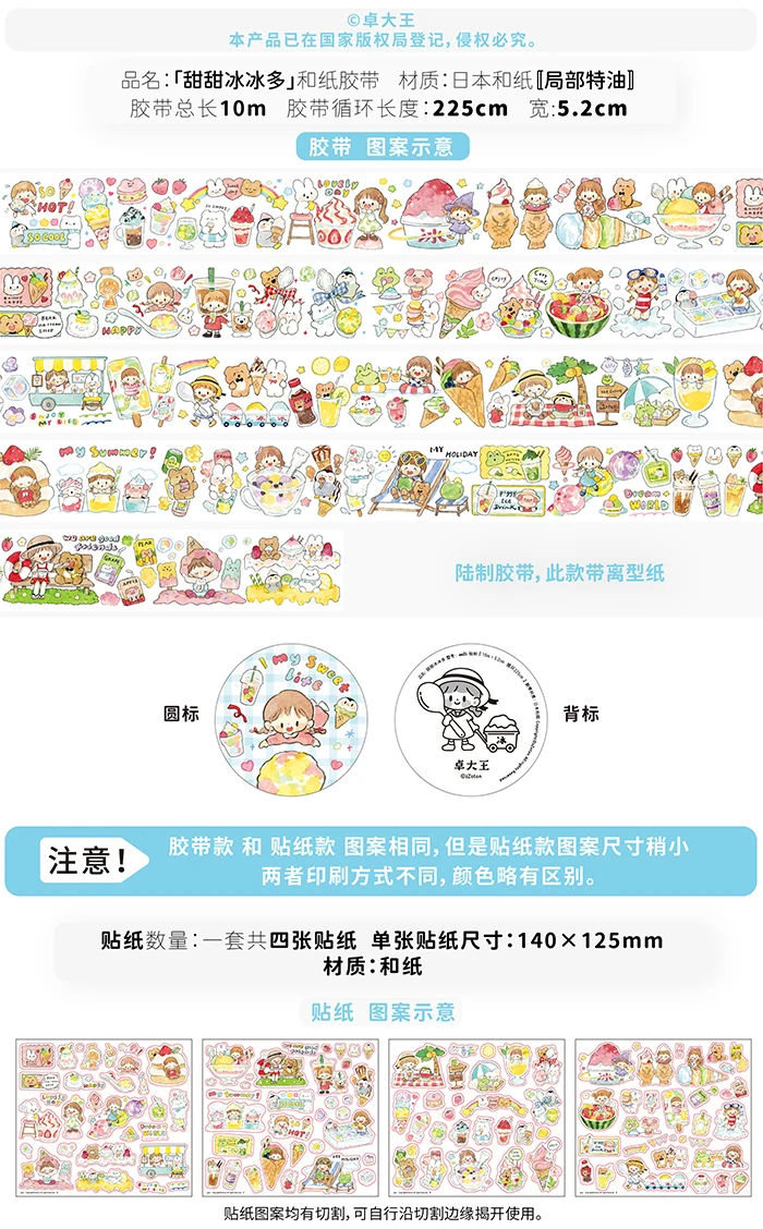 Декоративный скотч с принтом: 1 лот = 1 рулон, Размеры: 4,8 см/5,2 см * 10 м