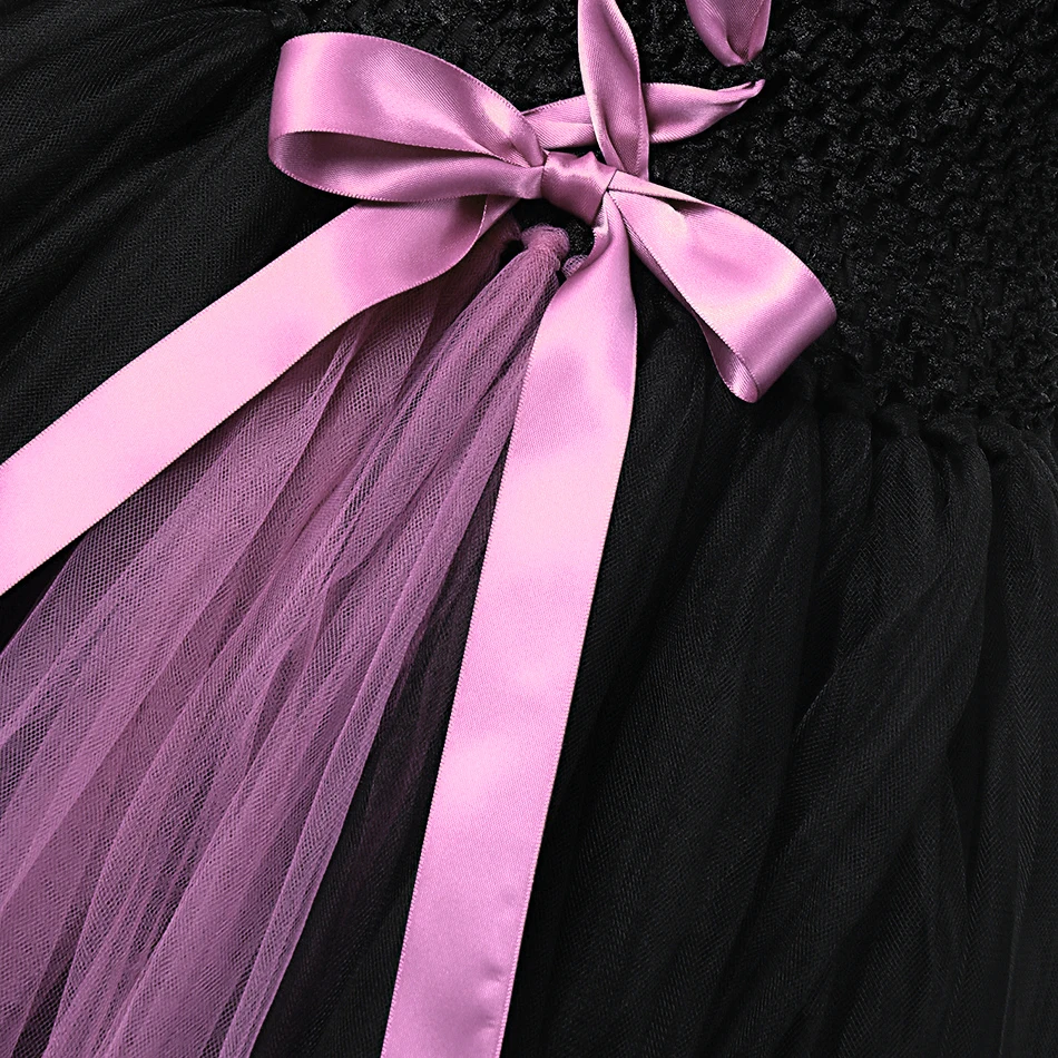 Детский костюм на Хэллоуин, малефисент, черный костюм-пачка дьявола, готическое причудливое платье-пачка для девочек с перьями, шаль, костюм для косплея