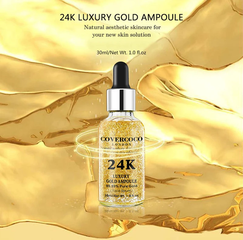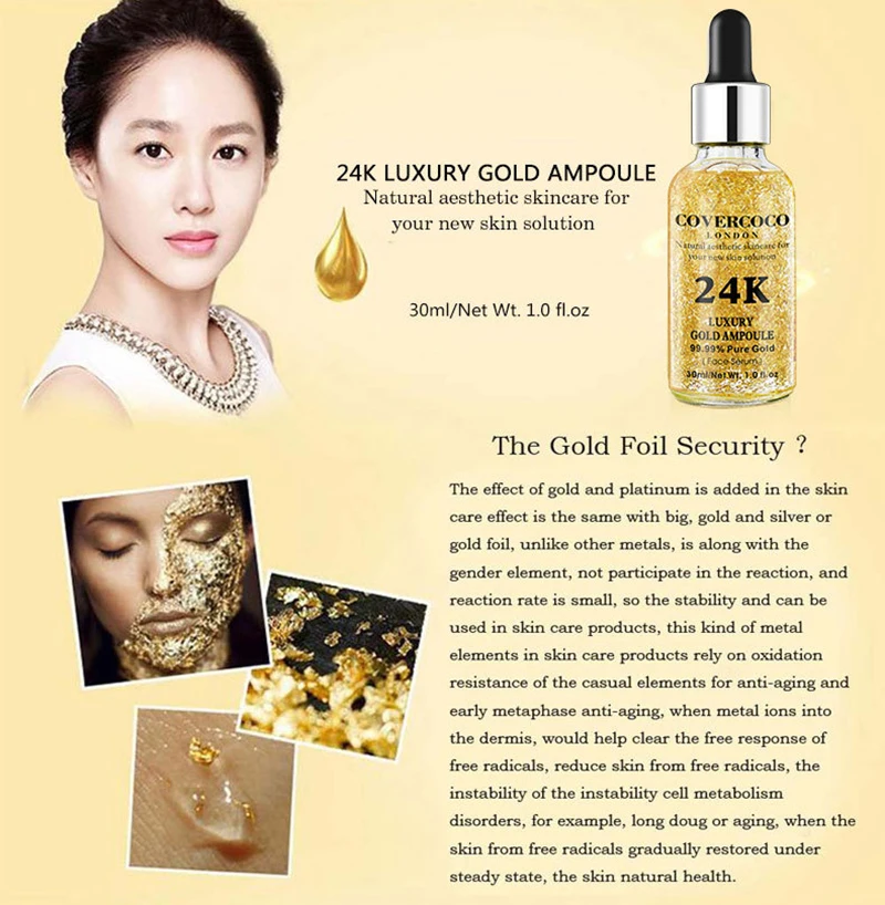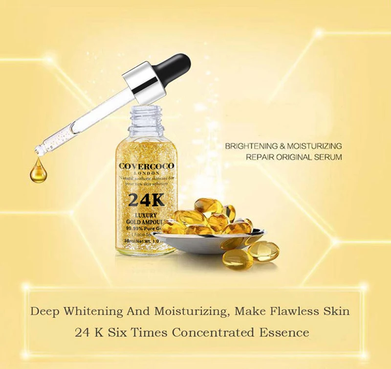 Эссенция для лица, увлажняющая сыворотка для лица с гиалуроновой кислотой, 99.99% Чистый золотой цвет, для улучшения матовости, осветления кожи, жидкий раствор для лица