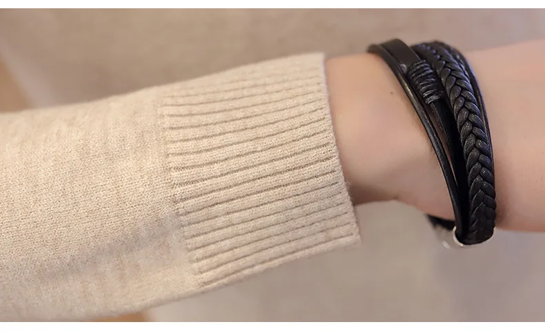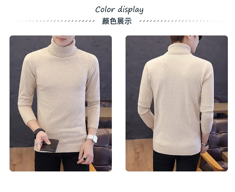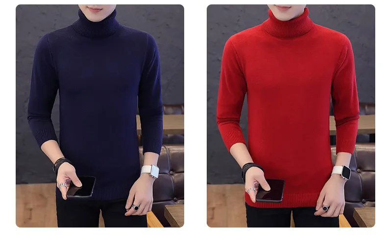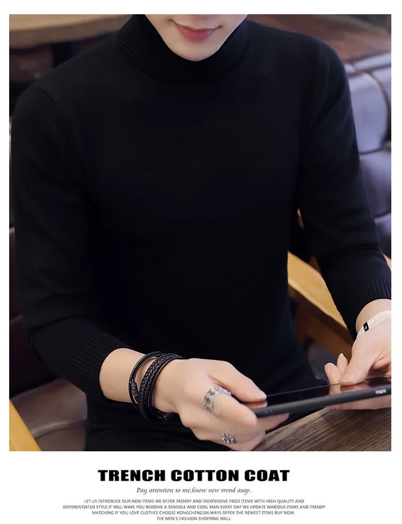 Свитер мужской вязаный, с высоким воротом, однотонный, черный, зима 2020