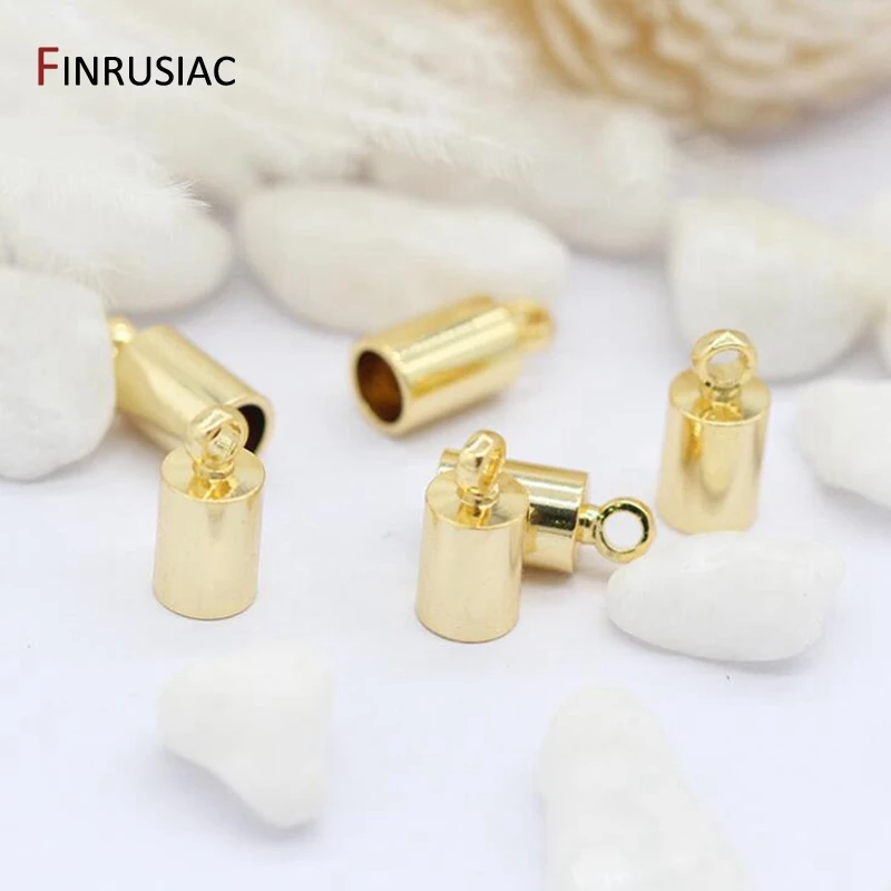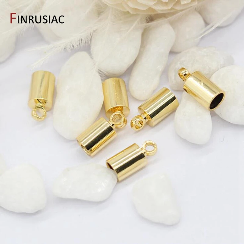 Обжимные колпачки для кожаного шнура с кисточками, 4 мм, для самостоятельного изготовления браслетов, ожерелий, ювелирных изделий, 14 к, позолоченные