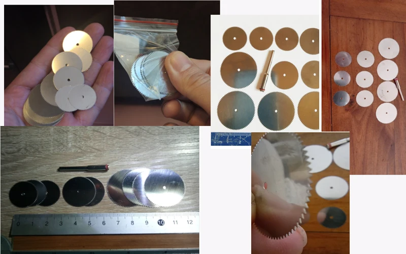 Заказ шёл около месяца. Большие диски немного деформированы. Тонковаты конечно, думал будут по толще. Для бор машины пойдёт. Пластик думаю можно резать. Ещё не пробовал ну за эти деньги пойдёт.