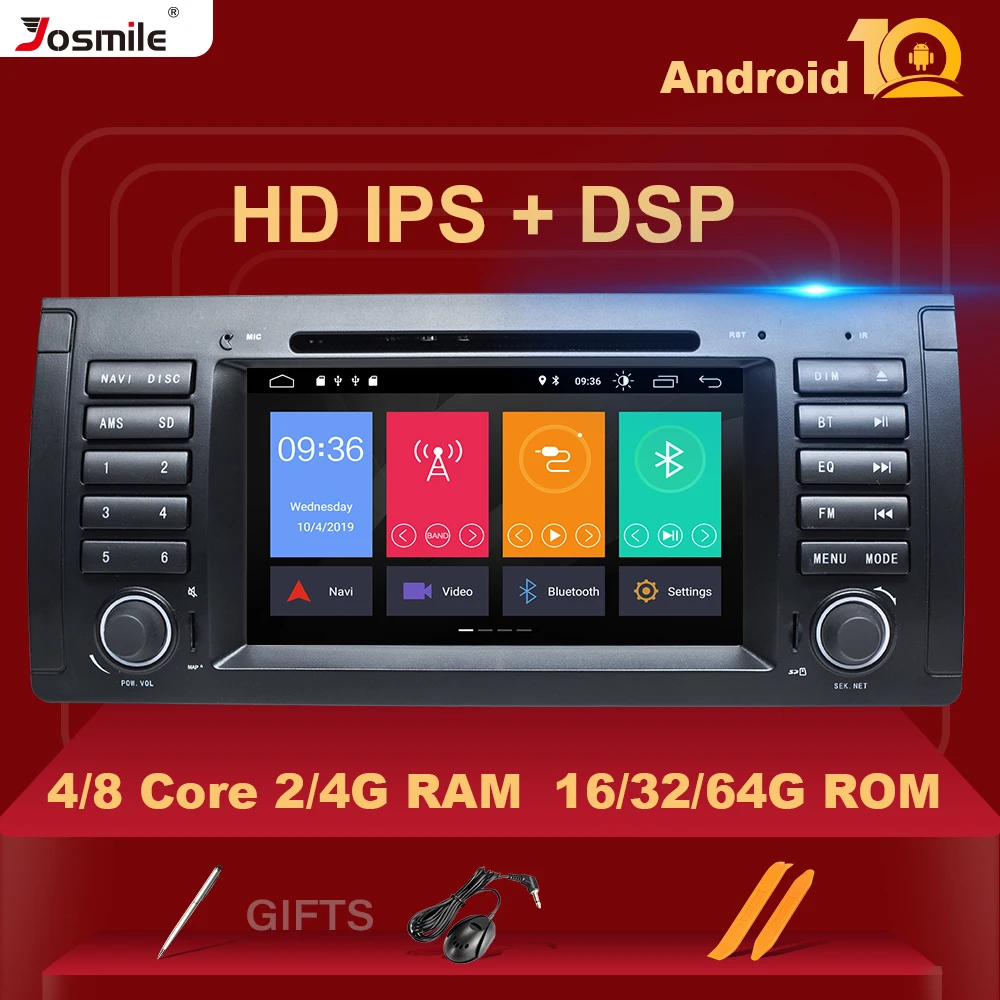 IPS DSP 1 Din Android 10 Автомобильный DVD плеер для BMW X5 E53 GPS...