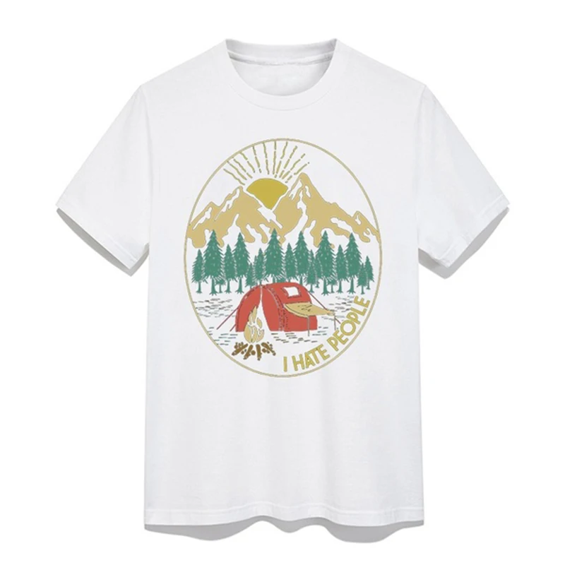 Мужская повседневная Простая белая футболка с принтом пять счастлив...