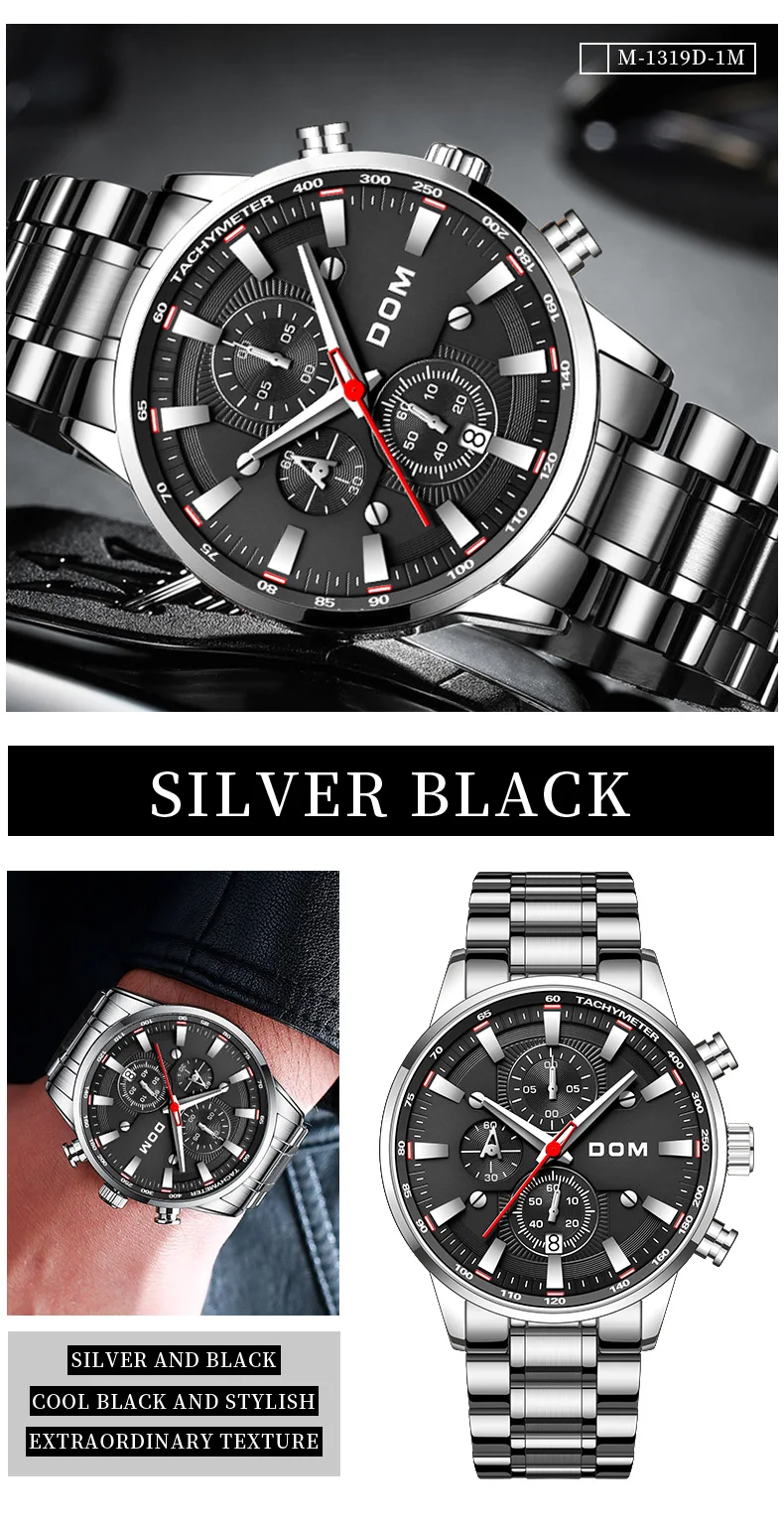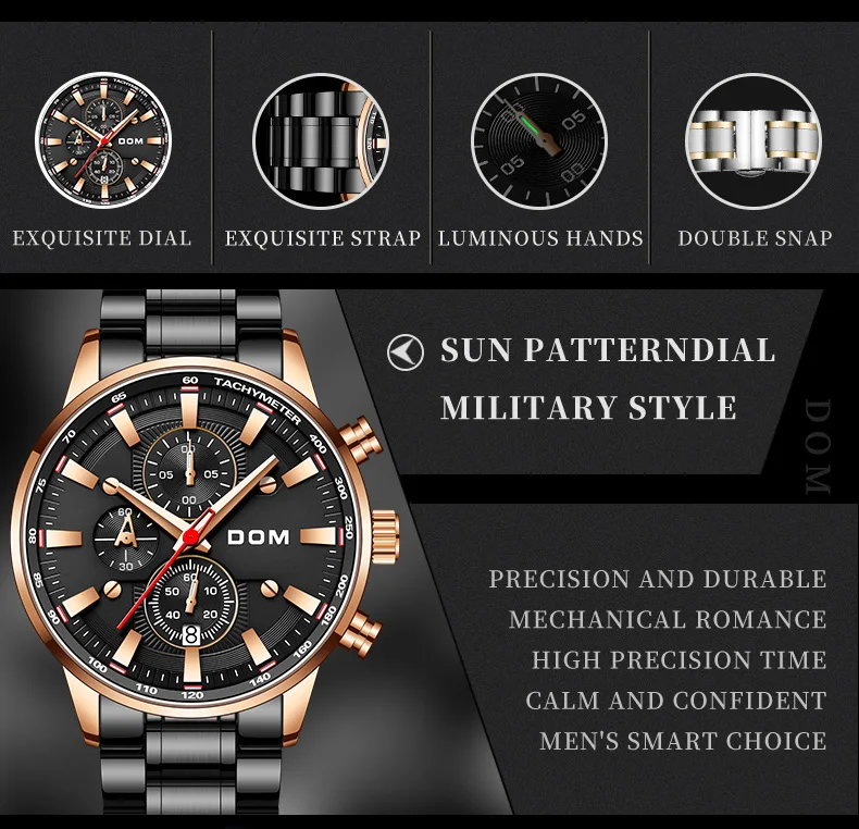 Роскошные мужские часы DOM, мужские водонепроницаемые часы с датой,...