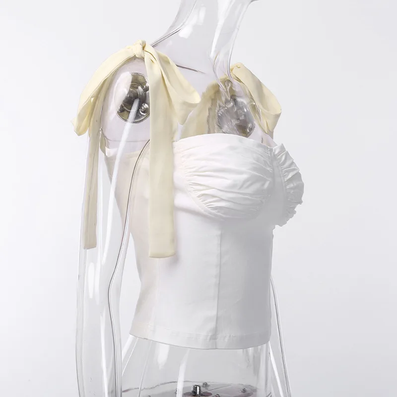 Женский жилет на бретельках, топы, бант на плечах, модная рубашка без рукавов, пуш-ап, укороченная одежда, облегающий клубный топ с рюшами