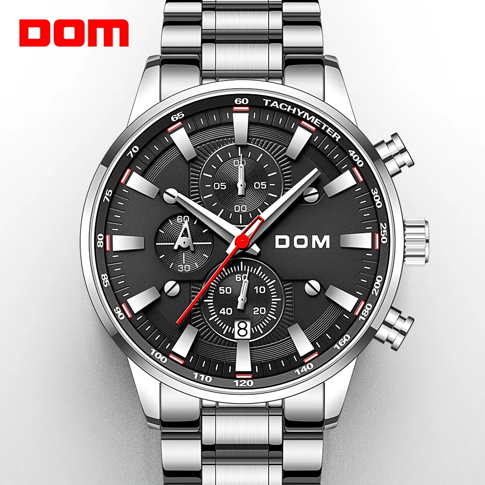Роскошные мужские часы DOM, мужские водонепроницаемые часы с датой,...