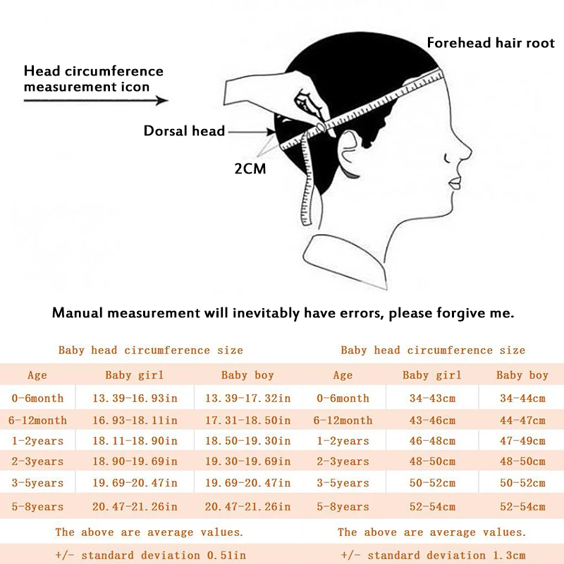 Пожалуйста, внимательно сверьтесь с таблицей размеров перед покупкой, чтобы убедиться, что размер повязка на голову подходит для вашего ребенка, а также в связи с тем, что измерения выполнены вручную, замеры сделаны вручную, поэтому возможны, так как измерения выполнены вручную 0,5-1 см.