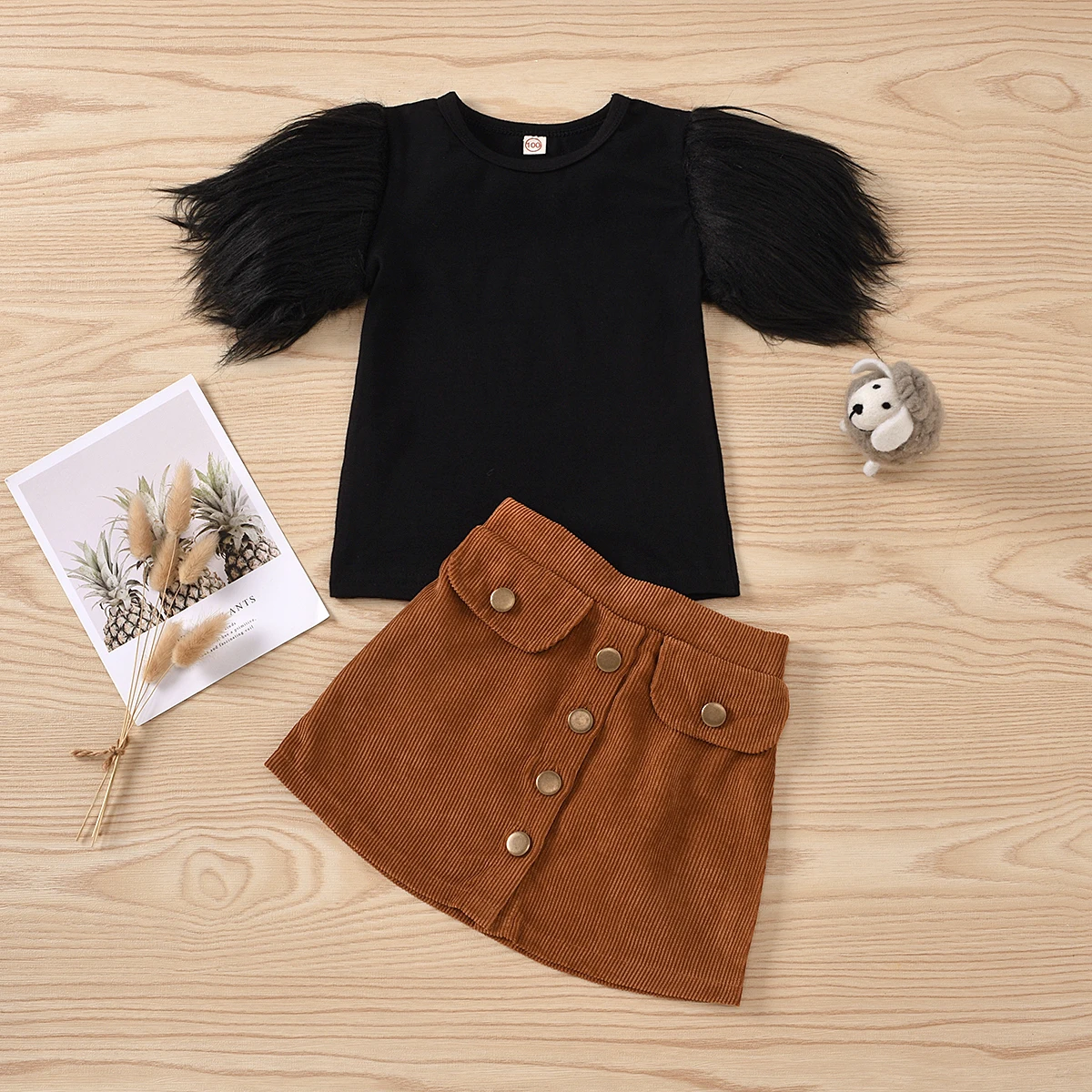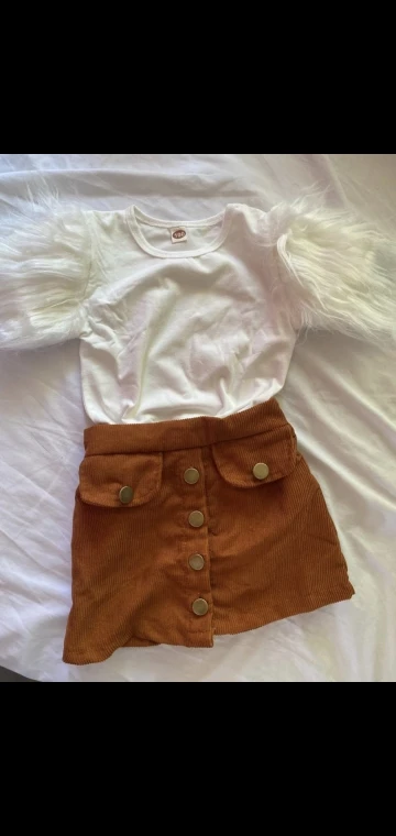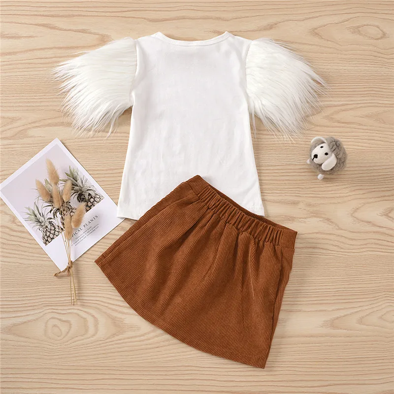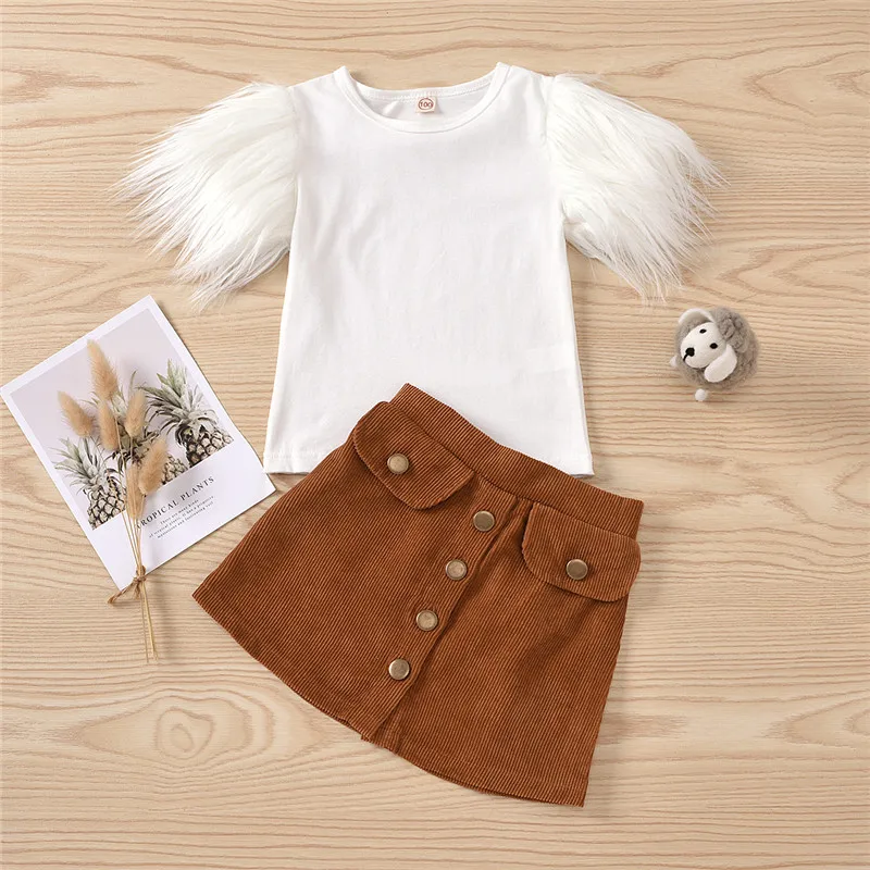 Комплекты одежды для девочек, детские, меховые шорты, футболки с рукавами, топы + юбки на пуговицах, повседневная одежда, От 2 до 8 лет