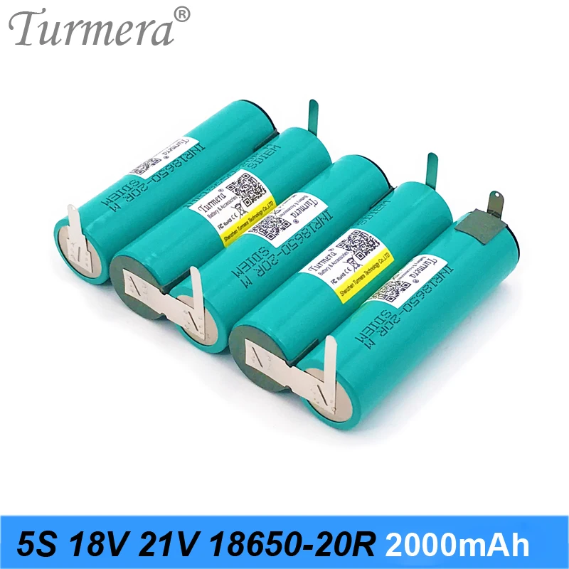 Аккумулятор для пайки Turmera 5S, 18 в, 21 в, INR18650-20RM, 2000 мАч, 20 А, для шуруповерта Shurika Shura, 18 в