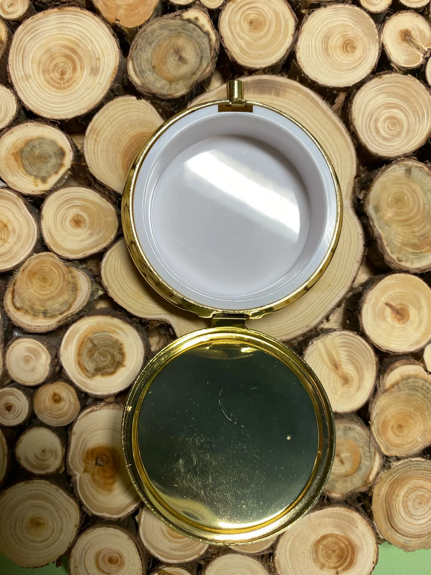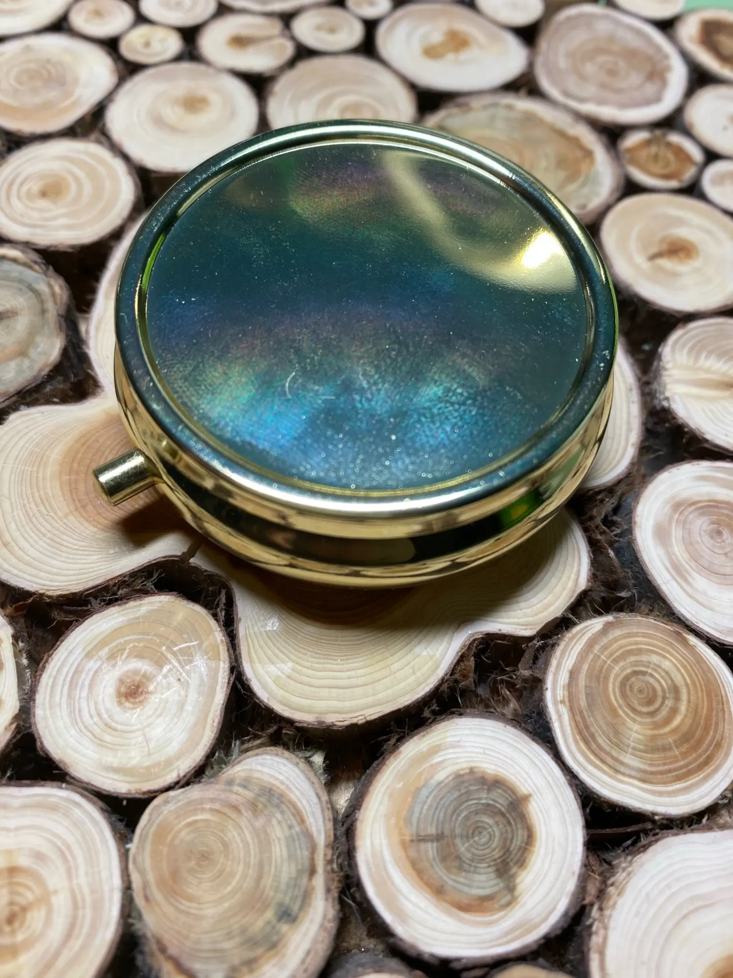 Отличная вместительная таблетница! Приятный золотой цвет. Закрывается плотно! Очень громко защелкивается. В крышку таблетницы можно смотреться как в mini-зеркало. Упаковано в полиэтиленовый пакет. Быстрая доставка в сборном заказе.