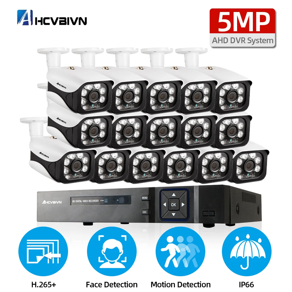 CCTV камера система безопасности 16CH DVR NVR система видеонаблюдения 5MP AHD наружная Всепогодная CCTV камера система ночного видения