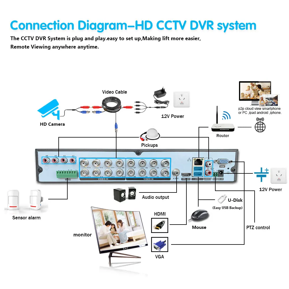 Простая настройка, всего 4 шага для просмотра мобильный телефон, просмотра видео в режиме реального времени из любого места и в любое время с помощью смартфона, стола или ПК с передовой технологией P2P, вы можете получить удаленный доступ к вашей системе за считанные минуты или меньше, нет необходимости в переадресации, удаленный доступ никогда не был таким простым!