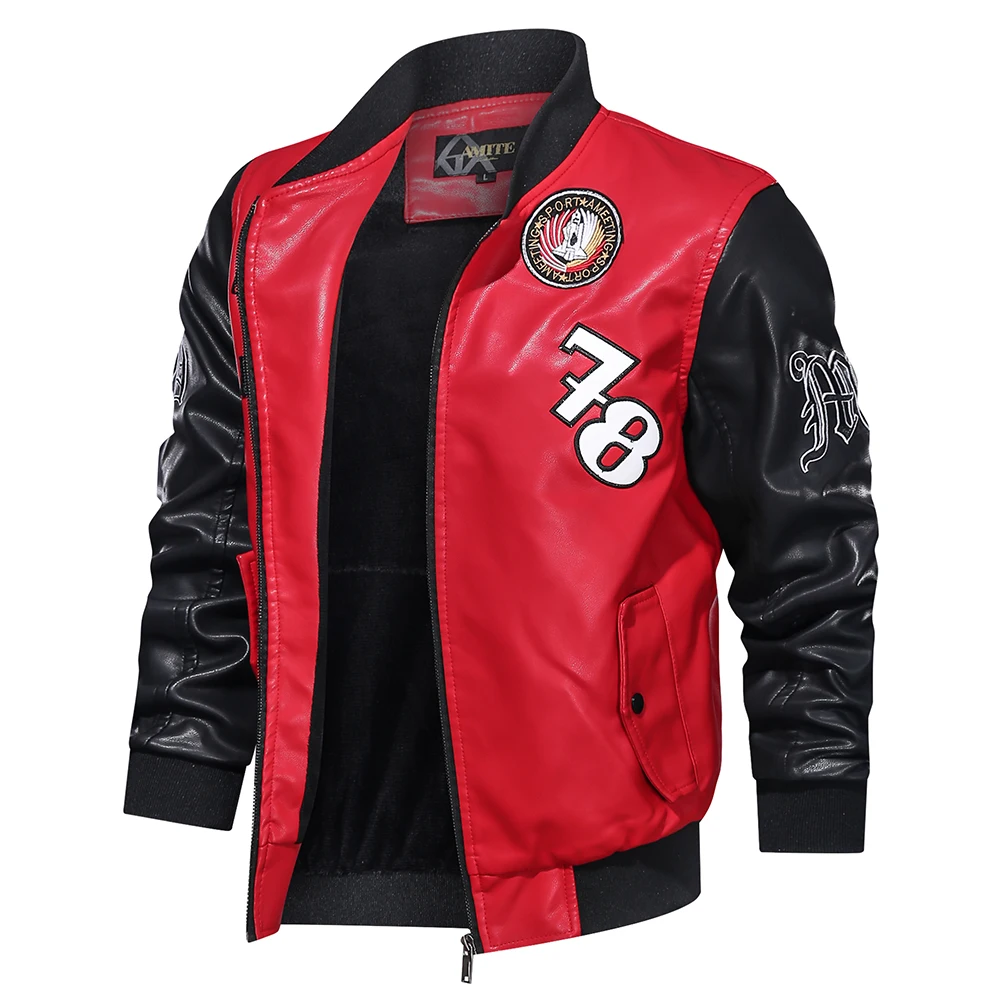 Мужская ветровка из искусственной кожи, мотоциклетная куртка из иск...