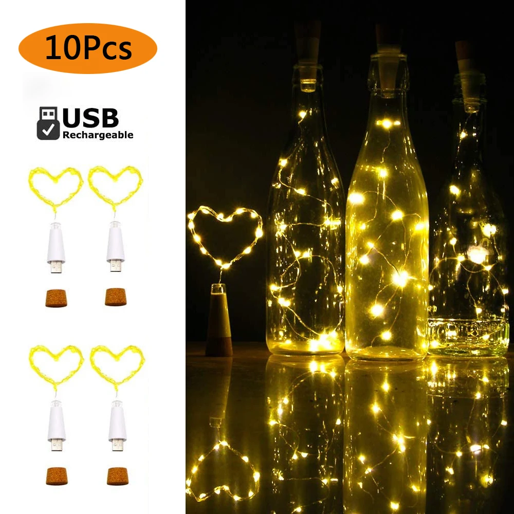 USB Перезаряжаемый 2 м 20 светодиодов винные бутылки светильники-пробка медная проволока струна Звездная светодиодная гирлянда для DIY, вечерние, рождественские, свадебные