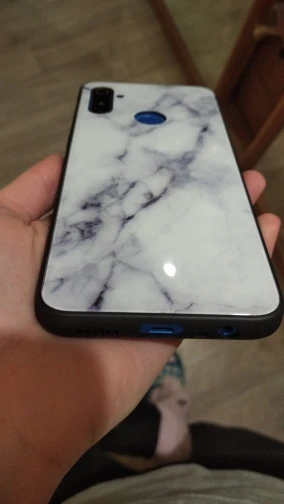 пачкается за секунду, рисунок похож на мрамор с расстояния 2 метров, а так сплошные пиксели. чехол тяжёлый, карточку под него положить нельзя - сразу съезжает. невозможно коснуться отпечатка. не оправдал цену вообще