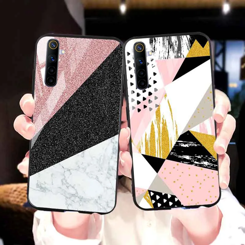 Мраморный чехол для OPPO Realme 6 Pro Чехол s Роскошные бамперы из закаленного стекла Realme 8 Pro GT Neo Q3 6i 7 8 X7 5 X2 C21 C20 C3 XT чехлы