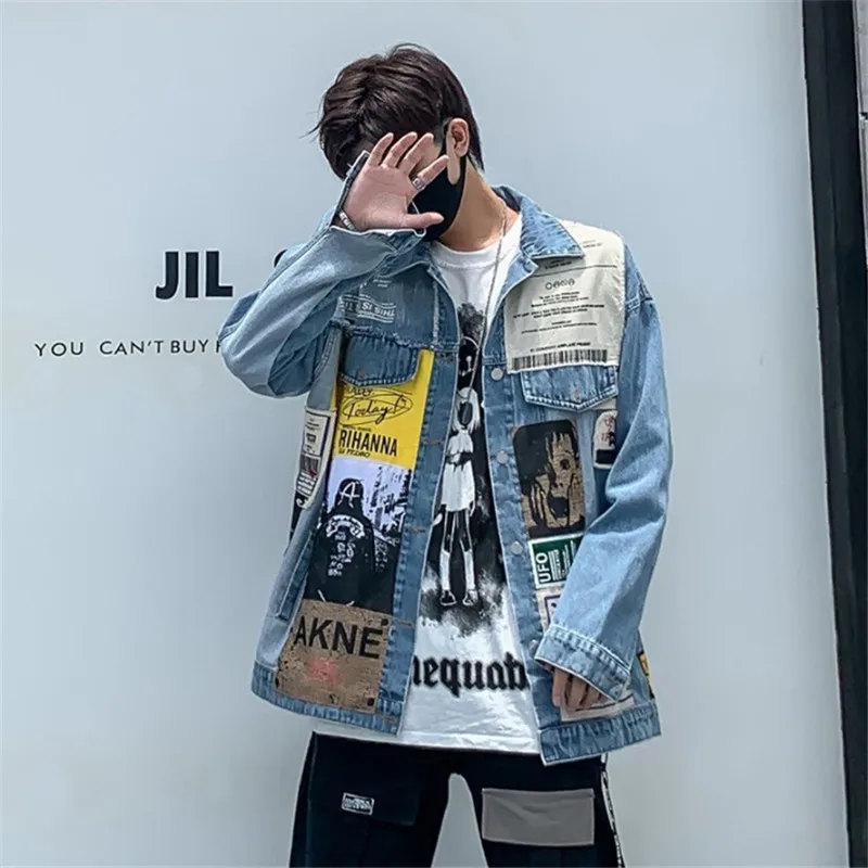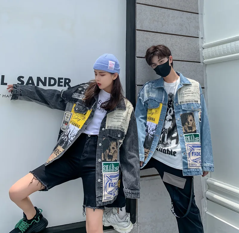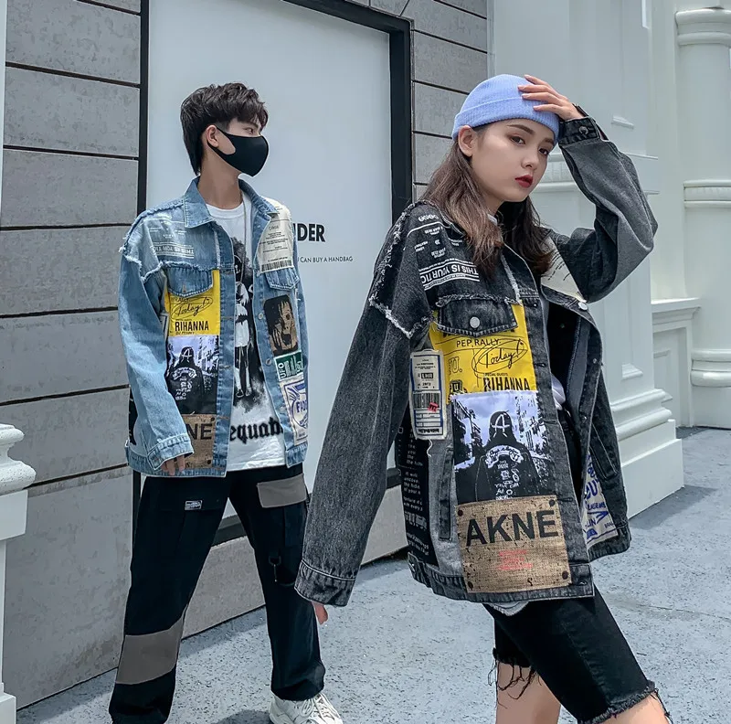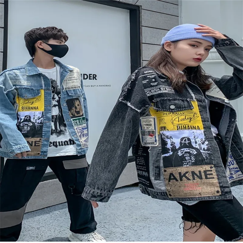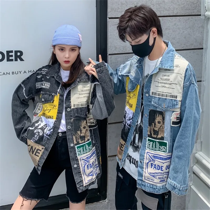 Джинсовая куртка для пар, Женская демисезонная куртка с индивидуальными нашивками, куртка bf в стиле панк, дикий Гонконгский вкус