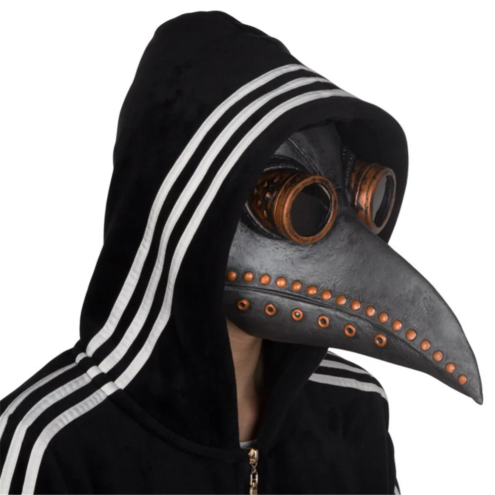 Маска Чумного доктора костюм в стиле стимпанк для косплея с клювом, из латекса белогочерного цвета, реквизит для костюма на ХэллоуинвечеринкумероприятиеБал