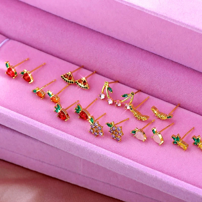 Милое Платье с украшением в виде кристаллов клубника серьги-гвоздики в виде вишневого арбуз персик серьги с фруктами изысканный подарок 2020, модная новинка, ювелирное изделие, подарок