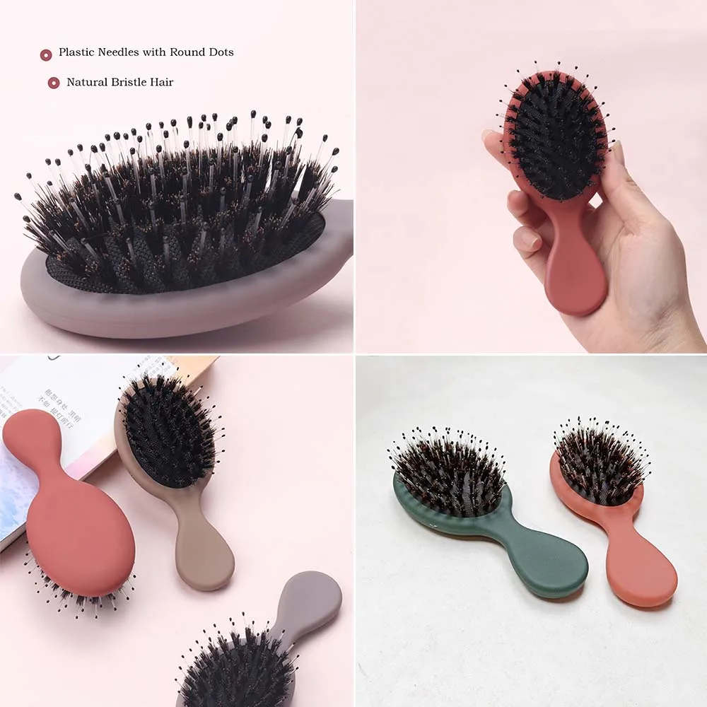 Расческа из натуральной щетины кабана, мини-ручка, массажная расчес...