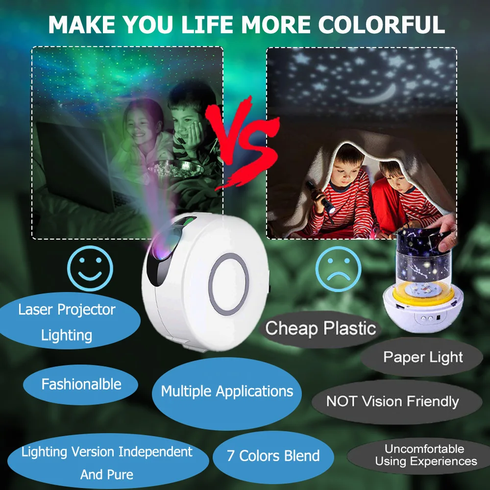 ▲ 7 видов цветов и потрясающая галактика1. 7 различных видов сценических лазерных световых эффектов, создающих тысячи звезд и Авроры.2. Этот ночной Светильник может быть статичным или движущимся, быстрым или медленным, мигающим или твердым, создавая невероятную атмосферу в любой комнате.USER удобный и 4 угла проекции1. Он имеет беспроводной пульт дистанционного управления 20/30 М. Кнопки используются для тусклых огней 3 различных настроек.2. Основание проектора galaxy имеет четыре боковых дизайна. Он воспроизводит проекции в потолках, стенах или в других направлениях.Romantic романтический дизайн и мульти-Применение1. Романтичный и высококачественный дизайн, детям понравится. Это отличный подарок для взрослых или детей.2. Это мечтательный креативный подарок на Рождество/День Святого Валентина/День рождения/вечерние сцены/диско-шар/Dj Бар/свадьба/дом/Юбилей/новоселье/возлюбленный/Дети спальня/гостиная.