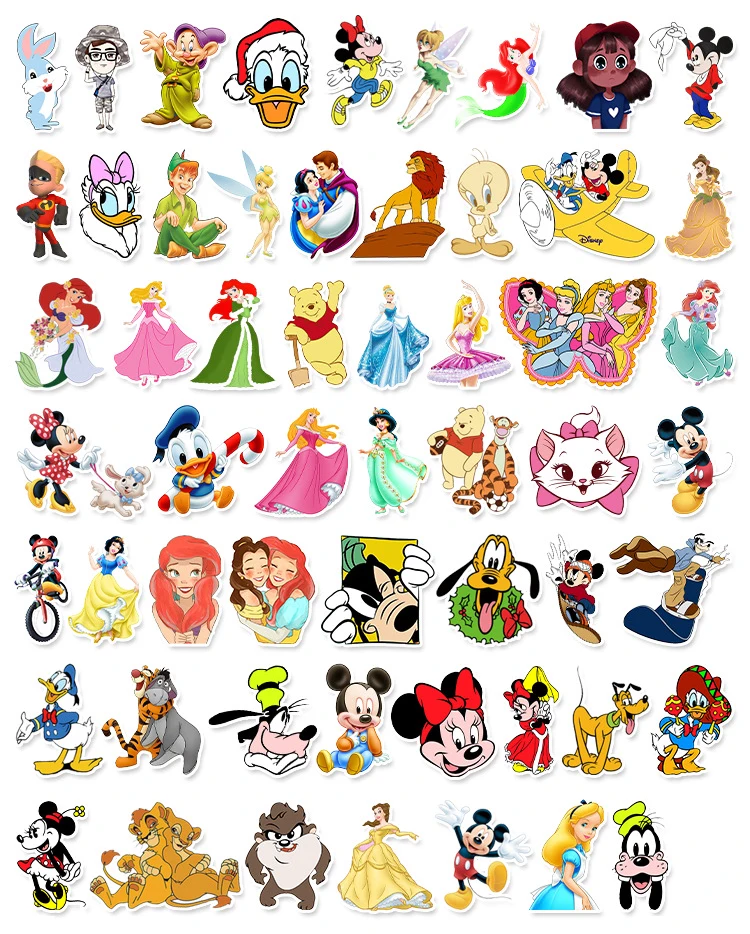 Disney 56 шт. комплект наряда принцессы с Микки и Минни, футболка с декором в виде для стайлинга автомобилей велосипед мотоцикл для мобильных устройств на путешествия чемодан забавные Стикеры