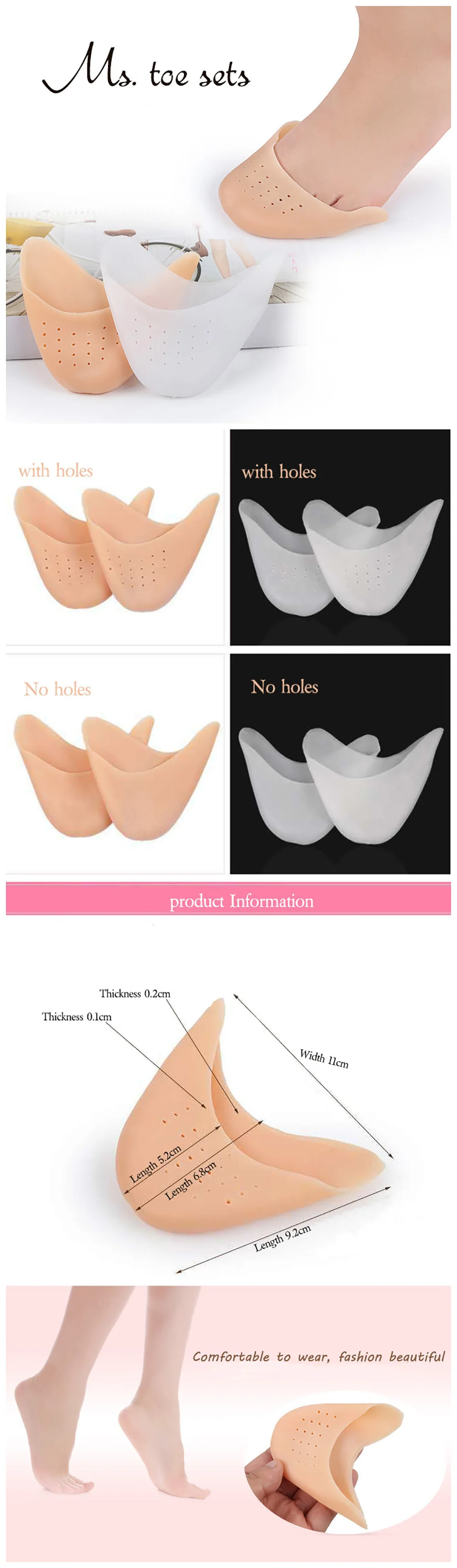 Силиконовые гелевые дышащие прокладки для балетных танцев на носках