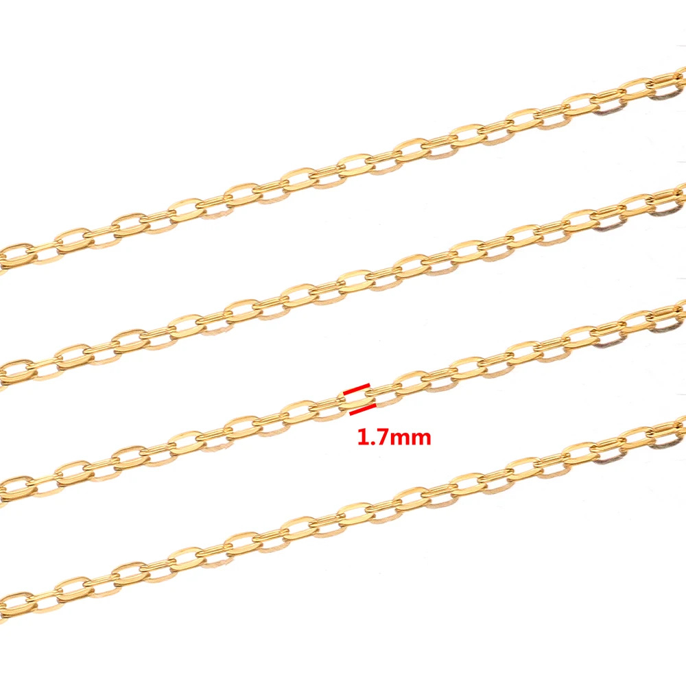 Имя:Плоская золотая цепочка Rolo шириной 1,7 мм, 2 м, цепочка из нержавеющей стали с золотыми звеньями для изготовления ювелирных изделий Изготовление браслета ожерелья