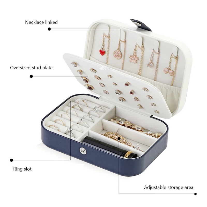 ? 【Красивый дизайн 】 внешний слой этой шкатулки для украшений-синтетическая кожа с хорошим качеством изготовления, подкладка-мягкий бархат из бисера. Шкатулка для украшений выглядит красиво и красиво.? 【Двухслойный большой емкость】 этот ювелирный чехол выглядит маленьким, но имеет двойной слой, что позволяет ему хранить больше. Хорошо Организуйте свое ожерелье, серьги, кольцо, часы, браслет.? 【 Размер 】 поставляется в маленьком размере размером 6,5 'x 4.5 ''X2.2'' всего 8 унций и 2 упаковки маленькой шкатулки для украшений размером 3,9 ''x 3,9'' x 2 ''всего 4 унции в каждой коробке. Портативный и легкий, не займет много места на туалетном столике и легко помещается в багаже во время путешествия.? 【 В этой шкатулке для украшений можно хранить ожерелье, серьги, кольцо. В коробке предусмотрена пластина-гвоздик, крючки для ожерелья, кольцевой паз и регулируемое пространство для хранения, вмещает большинство ваших крошечных украшений. Он также имеет регулируемый отсек для хранения, в котором можно хранить ваши часы или браслет, когда вам нужно.? 【Отличный подарок: 】 это действительно хороший подарок для женщин и девушек на День святого Валентина, День матери, Рождество, день рождения и годовщину или даже как небольшое удовольствие для себя.