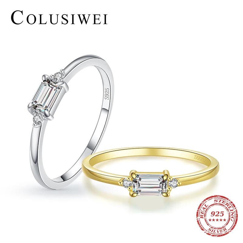 Colusiwei 925 стерлингового серебра модные изумрудная огранка AAAAA CZ стекируемые палец кольца для женщин, ювелирные изделия для помолвки, свадьбы