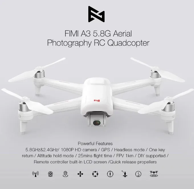 Дрон FIMI A3, радиус действия 5,8 ГГц, 1 км, FPV, двухосевой подвес, камера 1080P, GPS, Радиоуправляемый, RTF VS, Дрон 4K