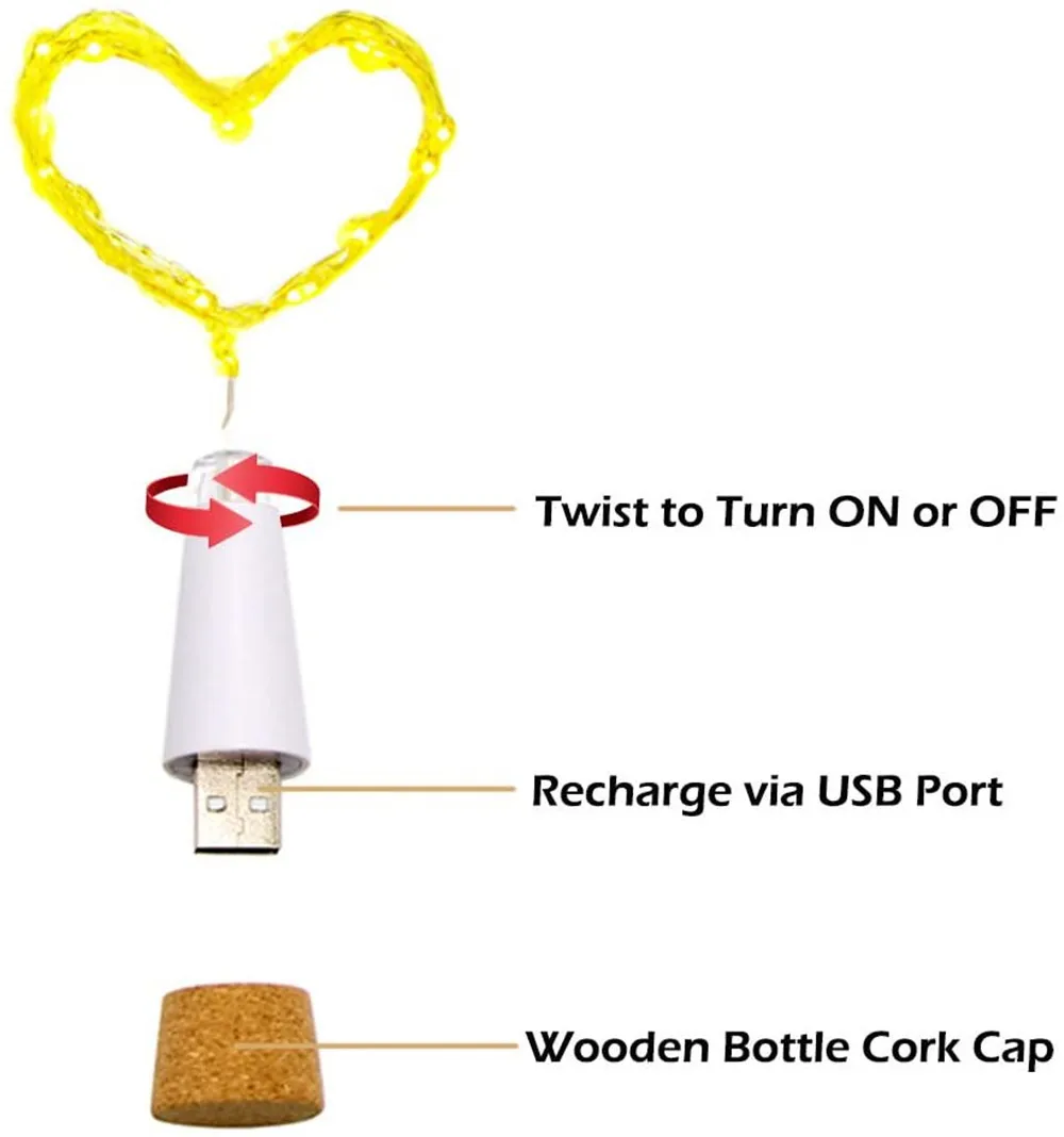 2 м 20LEDs светильники в форме винных бутылок пробковая USB перезаряжаемая Рождественская медная проволочная Гирлянда для вечерние свадьбы, Рождества, Хэллоуина