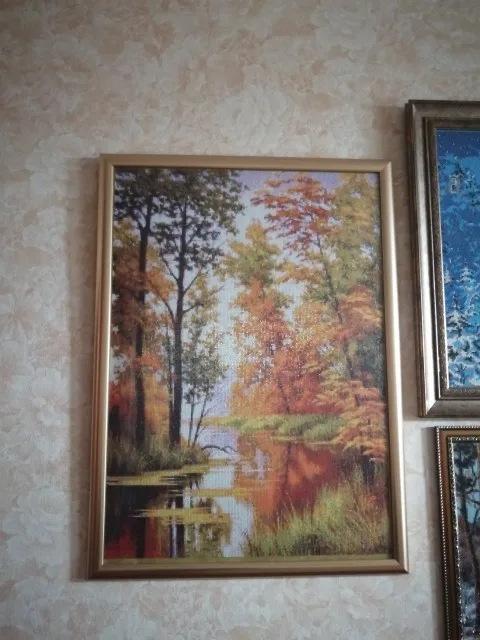 Картина пришла быстро, с момента заказа до прибытия 20 дней. Упакована была отлично, в пупырку, но в процессе сборки были недочёты, номера 36 не хватило на 1/4 картины, и ещё двух номеров страз было мало, это хорошо что у меня было из чего выбрать по оттенкам подходящим. А в целом картина соответствует описанию и получилась яркая. Собирать было одно удовольствие