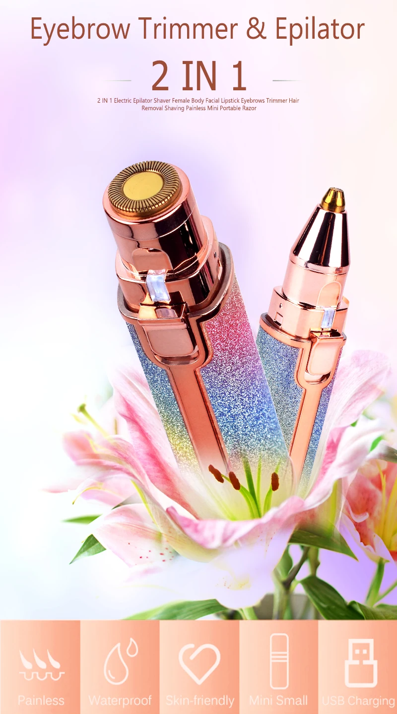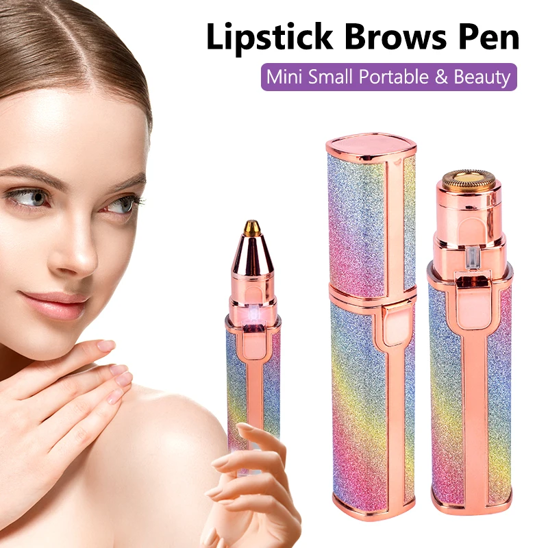 Портативный электрический триммер для бровей 2 в 1, женское устройство для безболезненного удаления волос в форме губной помады, Женская бритва