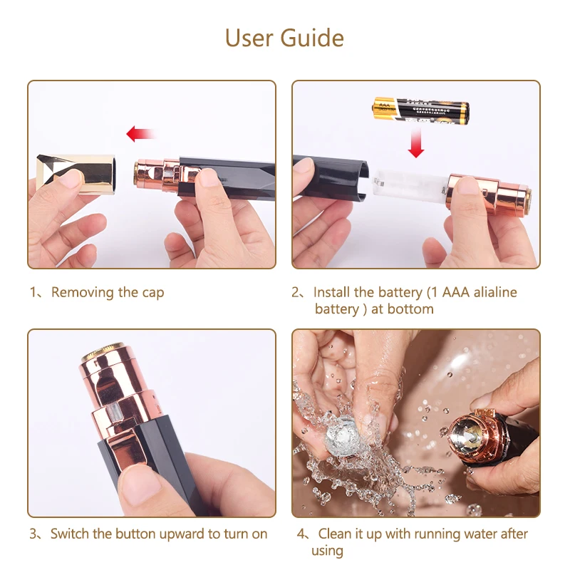 1. Осень на выключателе питания, машина работает, и светильник индикатора включен 2. Перемещайте машину по направлению роста бороды и Двигайте ее плавно, вперед и назад 3. Мы предлагаем использовать его в сухой среде. (Используйте его до/после мытья лица 4. Убедитесь, что питание выключено при замене режущей головки 5. Пожалуйста, держите устройство выключенным при зарядке 6. Не вставляйте лезвие в ушной канал глубоко, в противном случае это может повредить ушной канал.