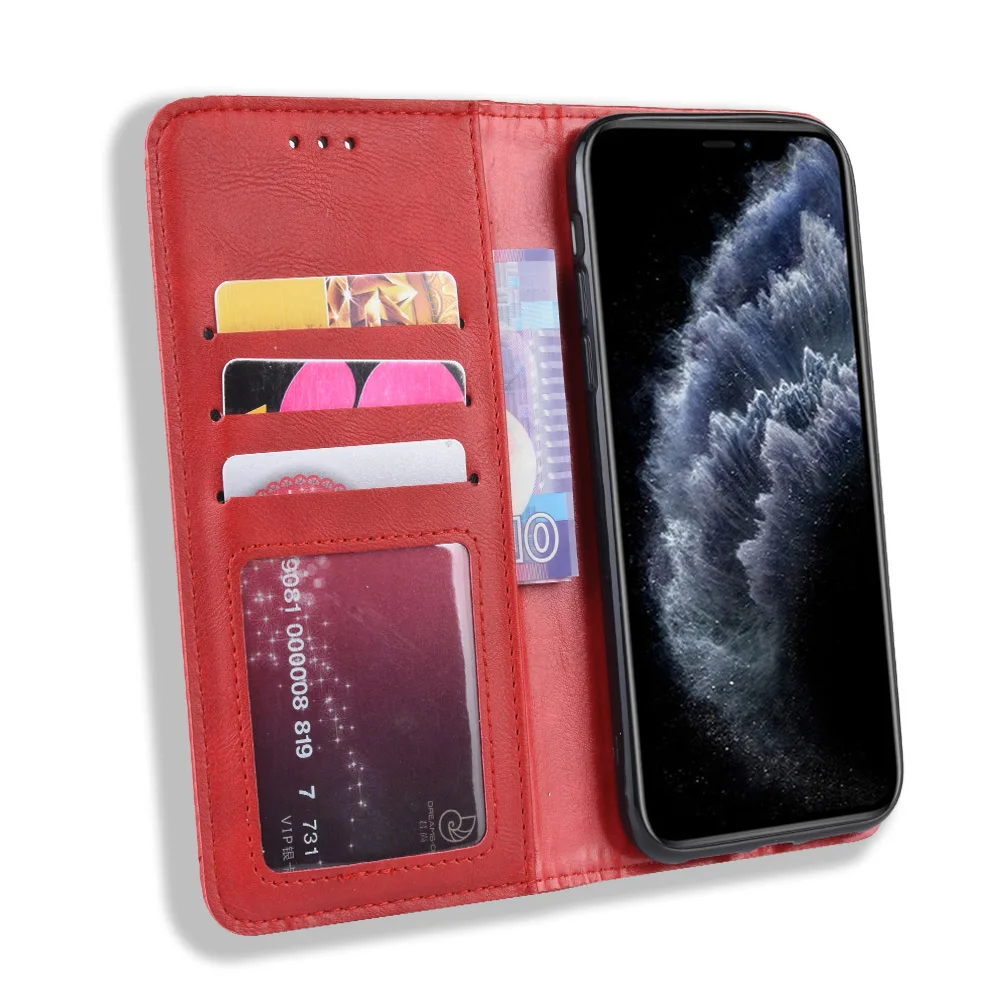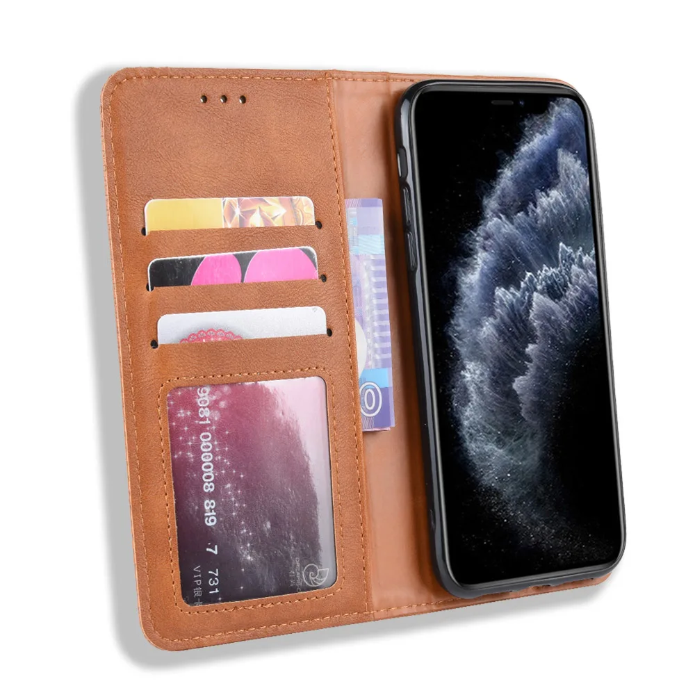 Роскошный чехол-портмоне в ретро-стиле Тонкий Магнитный кожаный чех...