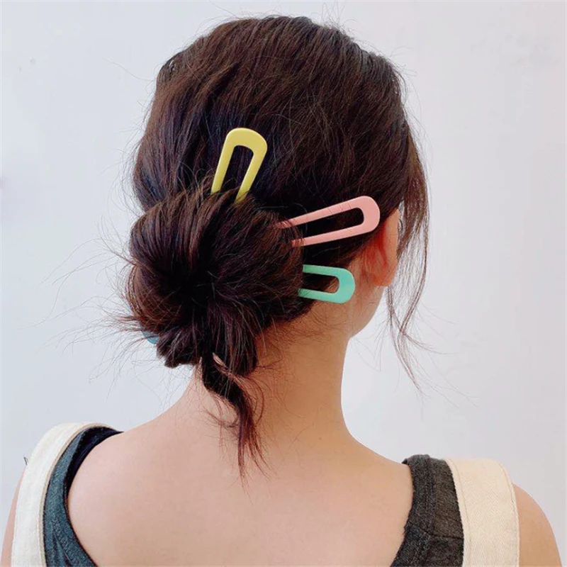Женские U-образные заколки, металлические заколки-зажимы, простые геометрические аксессуары для волос, модные инструменты для дизайна прически