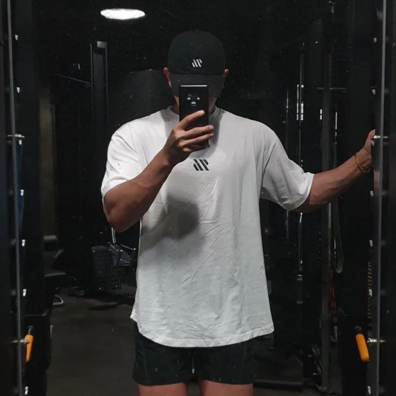 Мужская хлопковая футболка с коротким рукавом, мужская спортивная футболка, свободная футболка для фитнеса, бодибилдинга, бега, Мужская брендовая одежда для тренировок