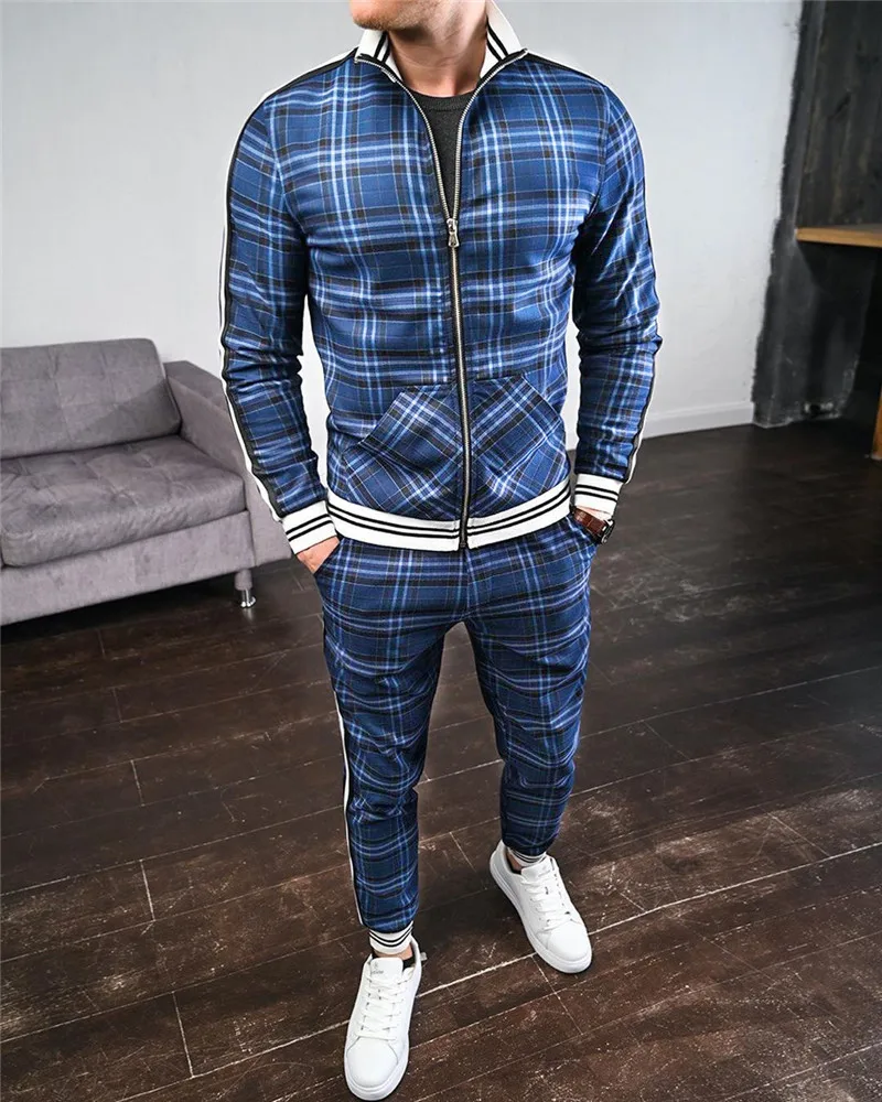 Новинка, модные куртки, мужской спортивный костюм, мужской комплект, красочный клетчатый мужской повседневный костюм, осенний спортивный костюм, мужской свитшот с карманами