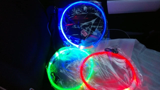 товар соответствует, комплектация полная. То что хотели. Не порадовала только очень долгая доставка, почти 2,5 месяца. заказывали три цвета: красный, синий и зелёный. Светят ярко. У нас уже был ошейник жёлтого цвета, которым были очень довольны, служил 2 года, он и сейчас есть только собаки в играх подломили пластиковые элементы.
